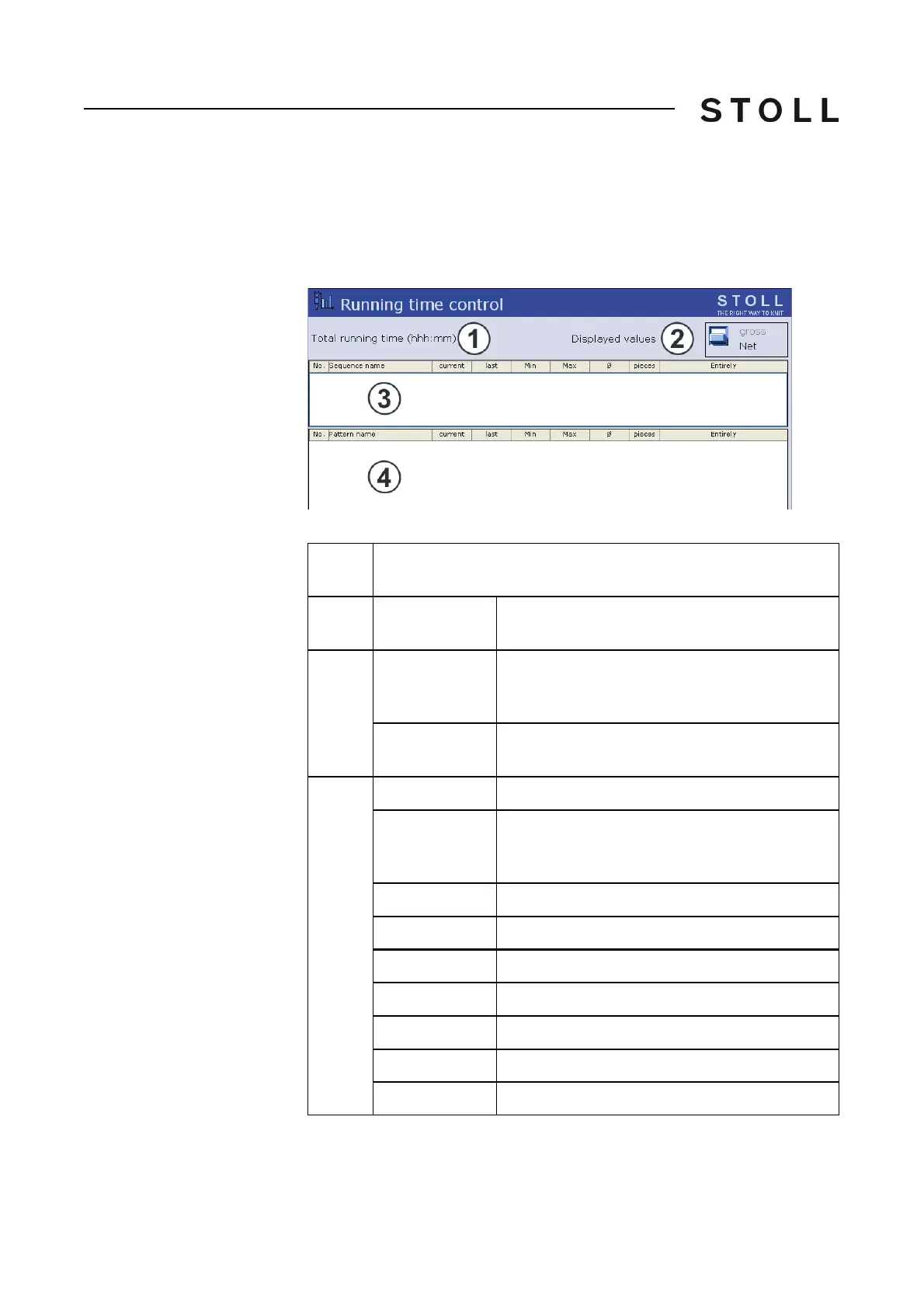Meaning of the elements in the "Running time control" window.