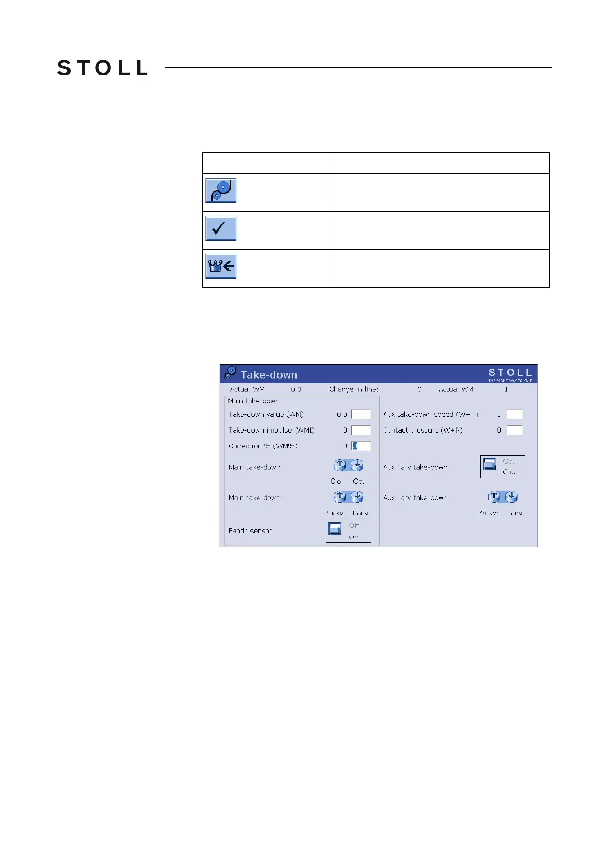 2. To enter the fabric take-down values, tap the input fields and enter the