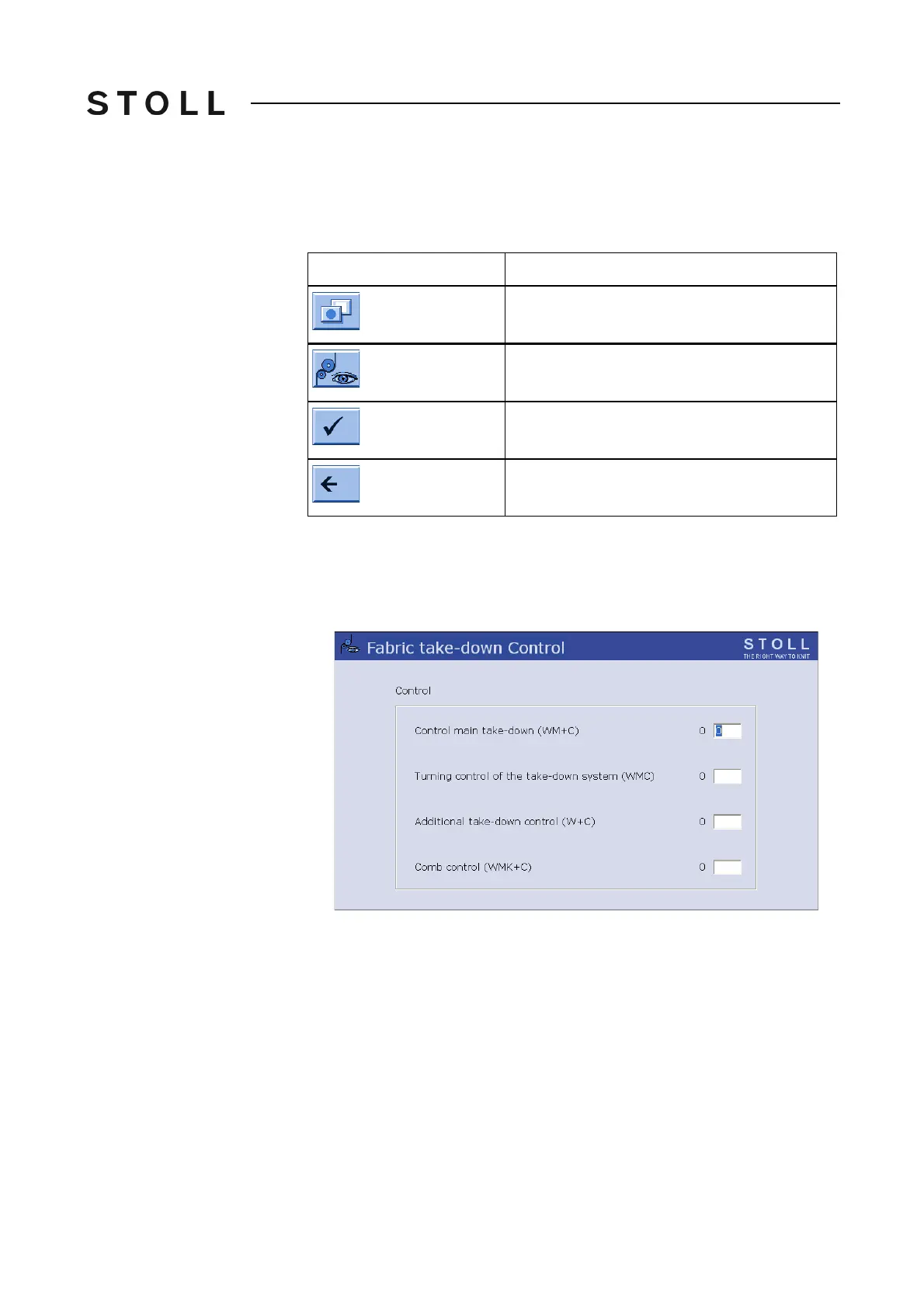 2. Call up the "Fabric take-down Control" window.