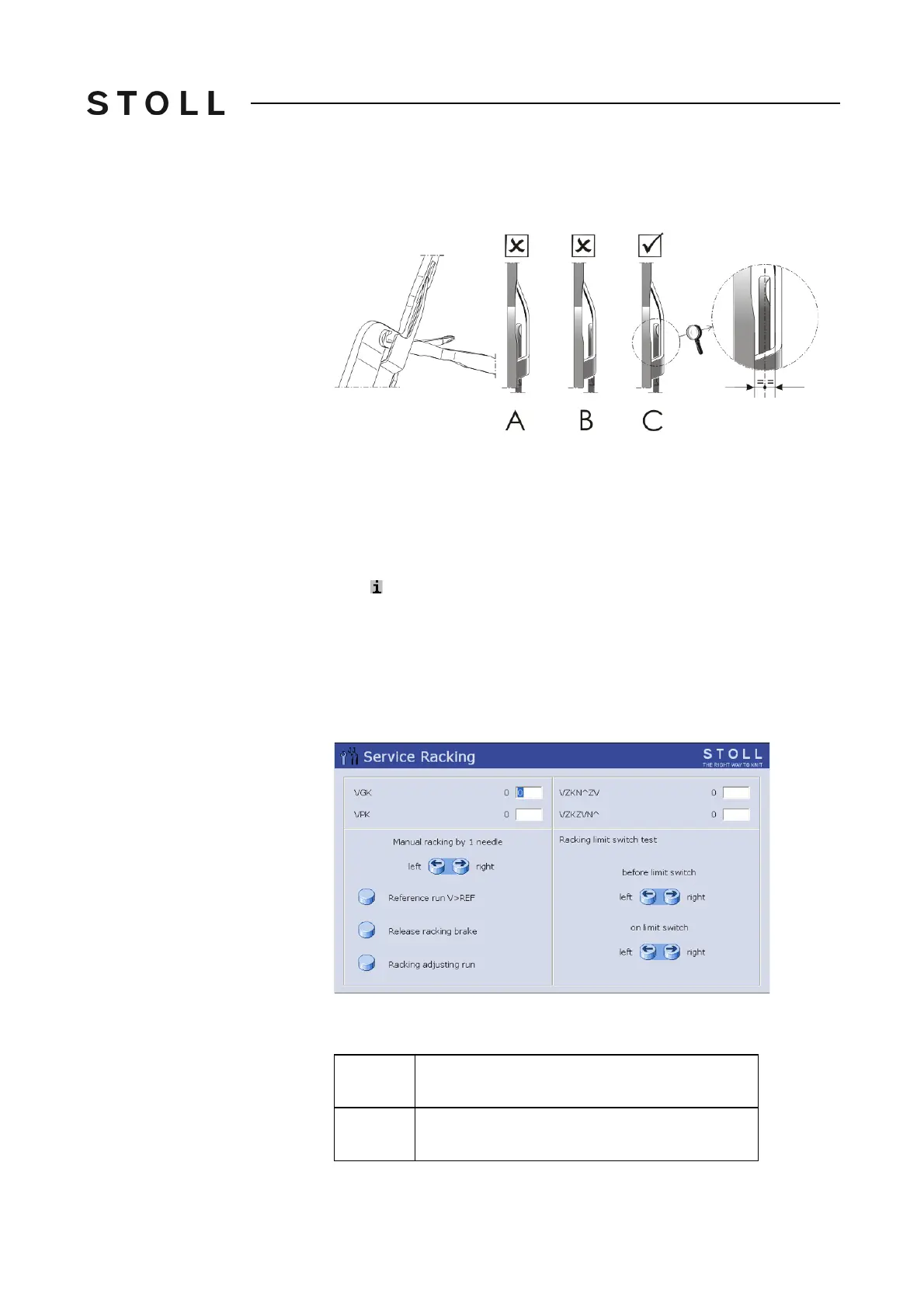 4. If this is not the case: Push back needles and correct racking device.