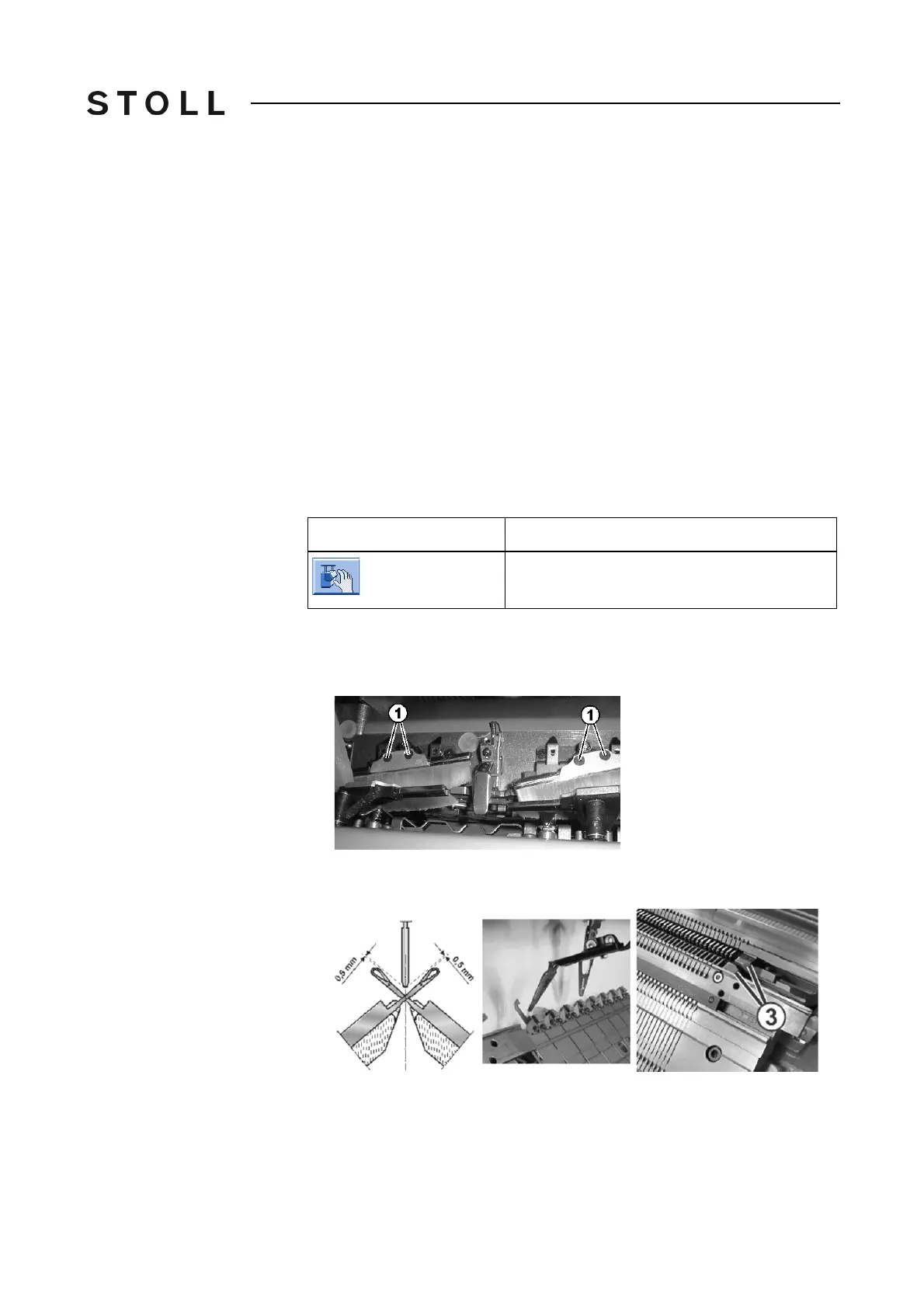 the yarn carriers of the track 1 and 8 are also set 0.5 mm higher so that