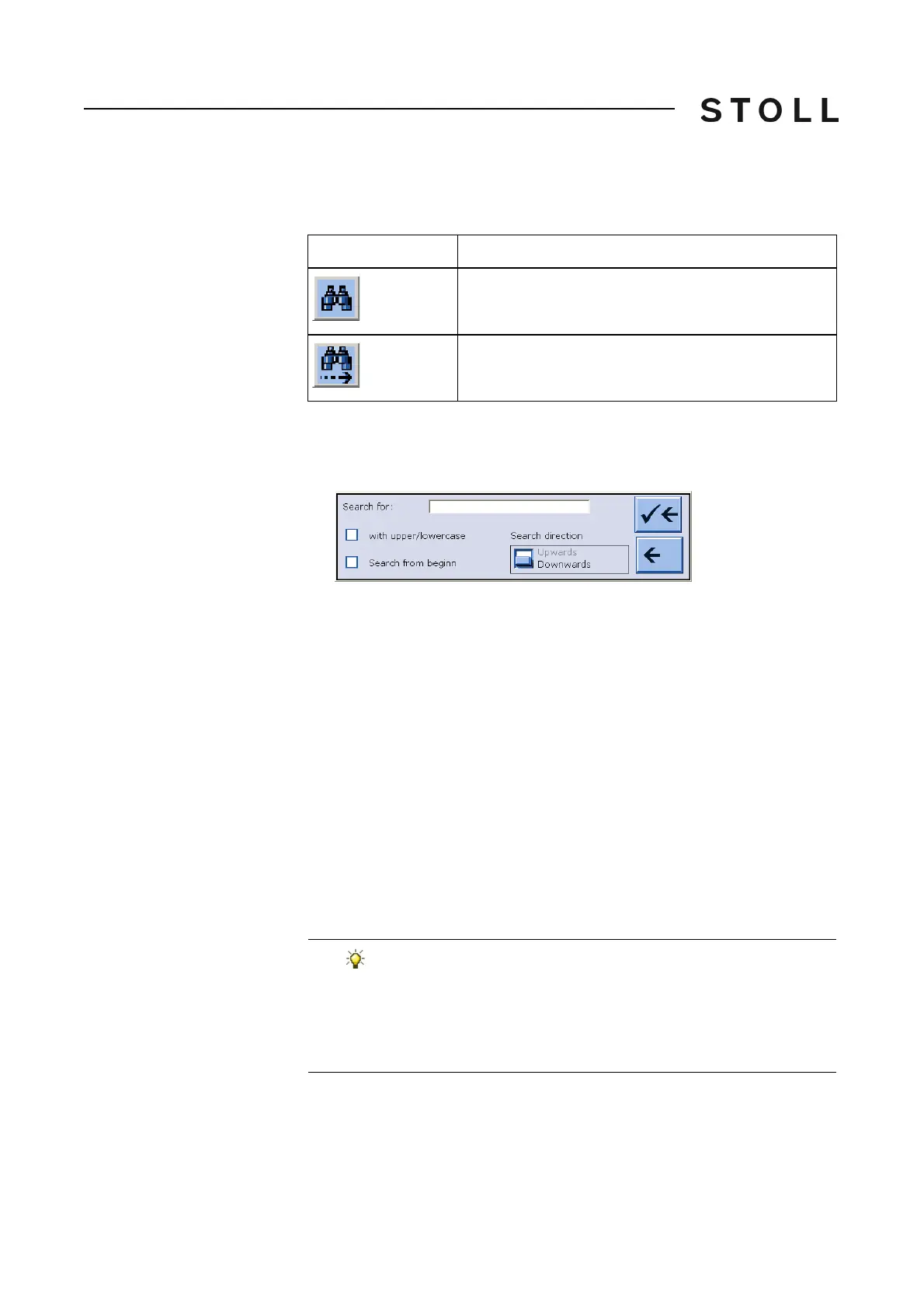 2. Enter the line number or text to be searched for with the virtual keyboard.