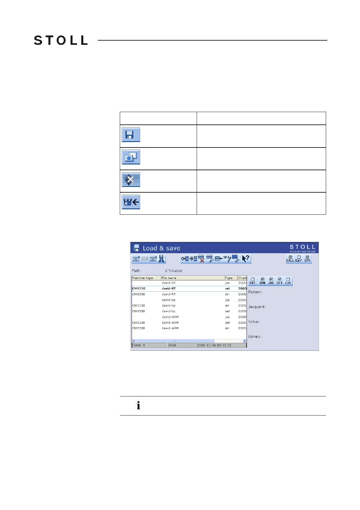 Clear knitting memory 1. Call up the "Load & save" window.