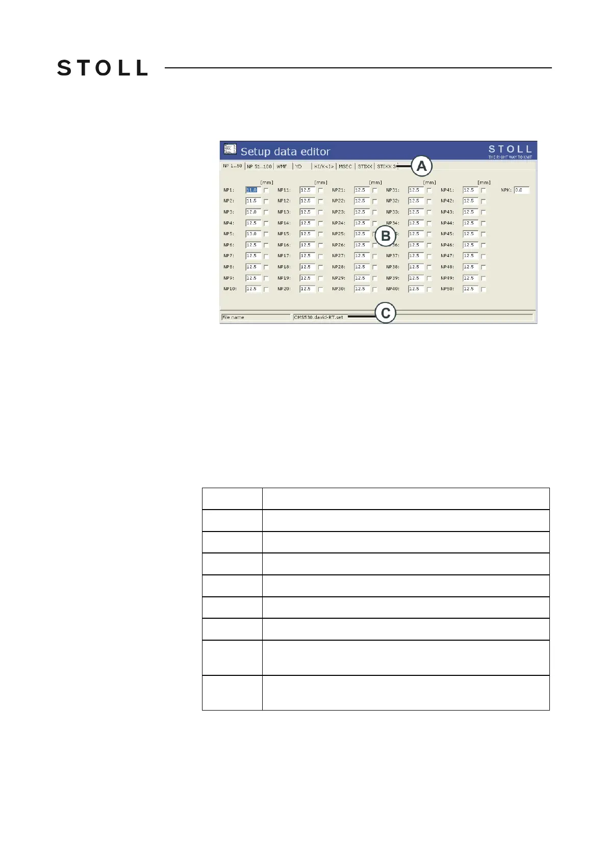 The "Setup data editor" window contains a maximum of 8 tabs: