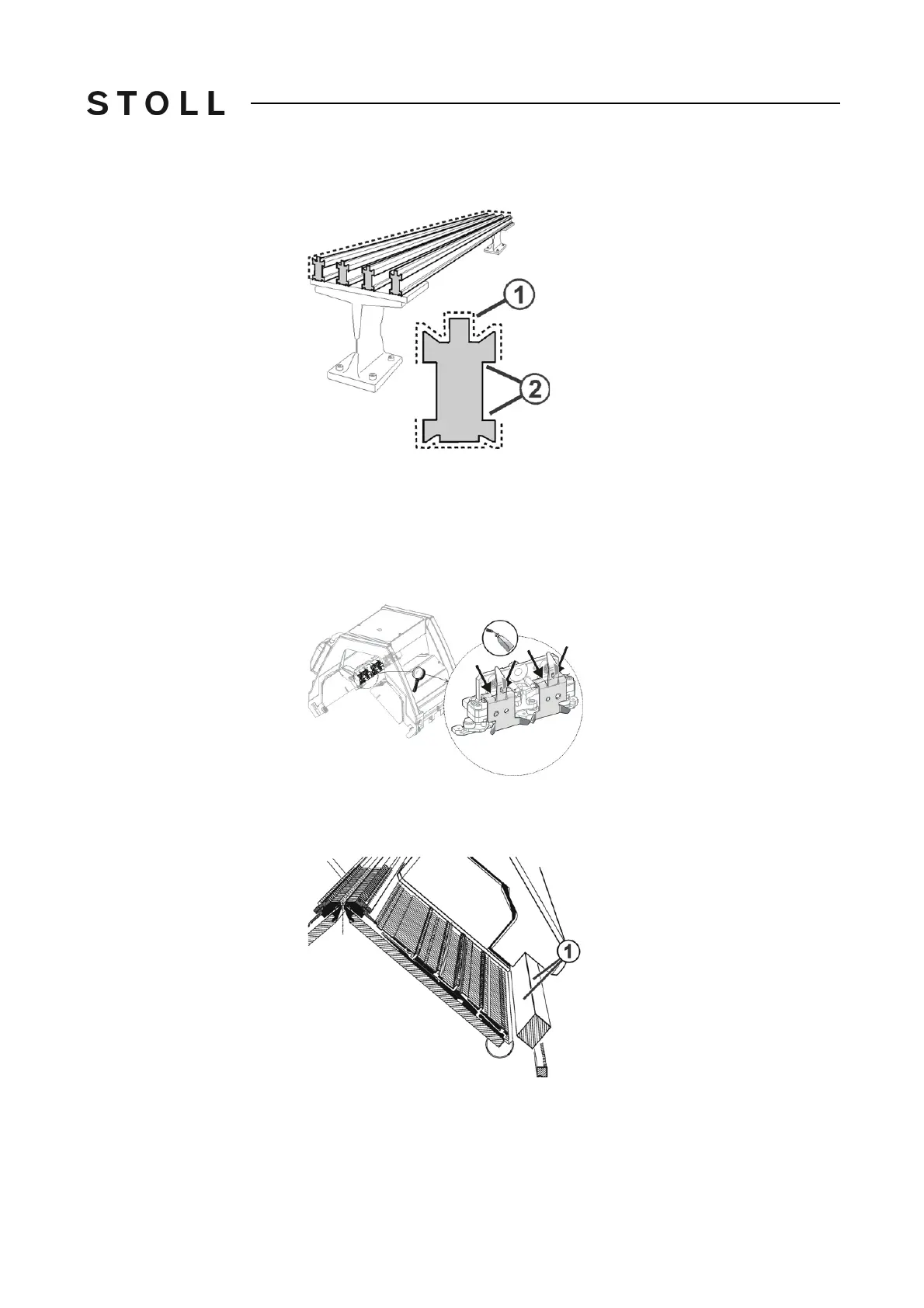 1. Use a brush or a spray bottle to apply oil to the yarn carrier rods (1).
