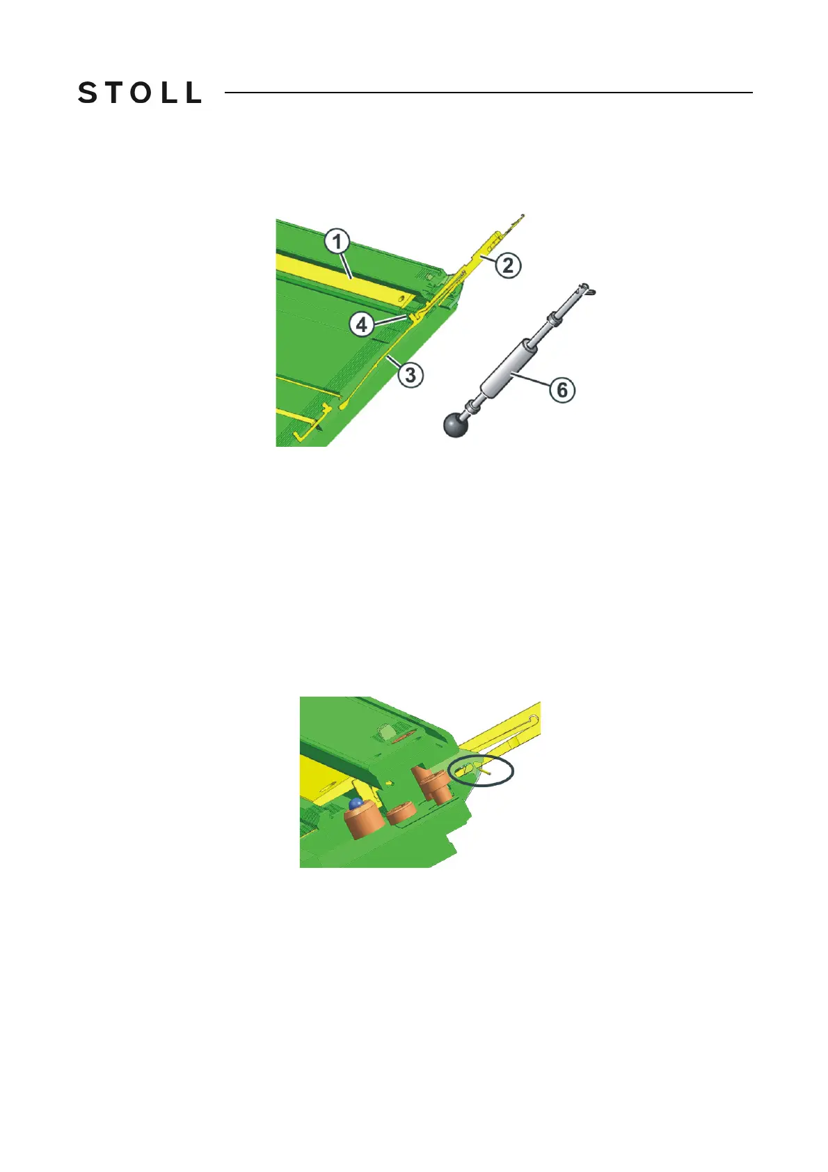 1. Pull-out the needle rail (1) with the extraction hook (6).