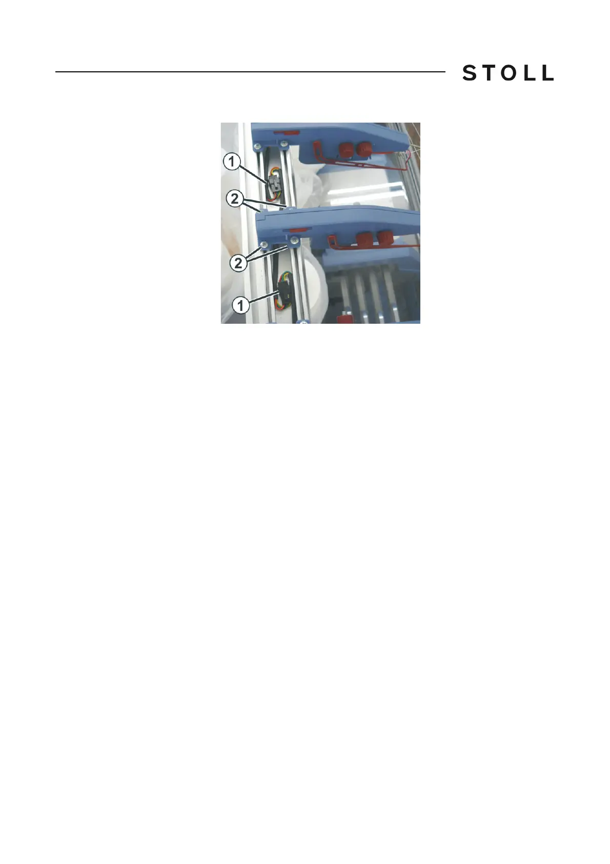 5. Mount the new yarn control device exactly at the position (marking)
