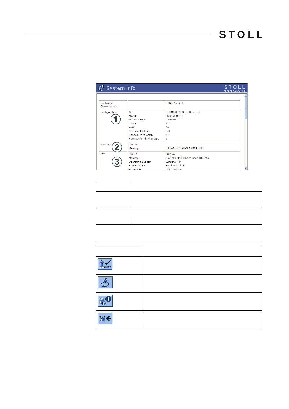 All important hardware and software data of the control are displayed in the