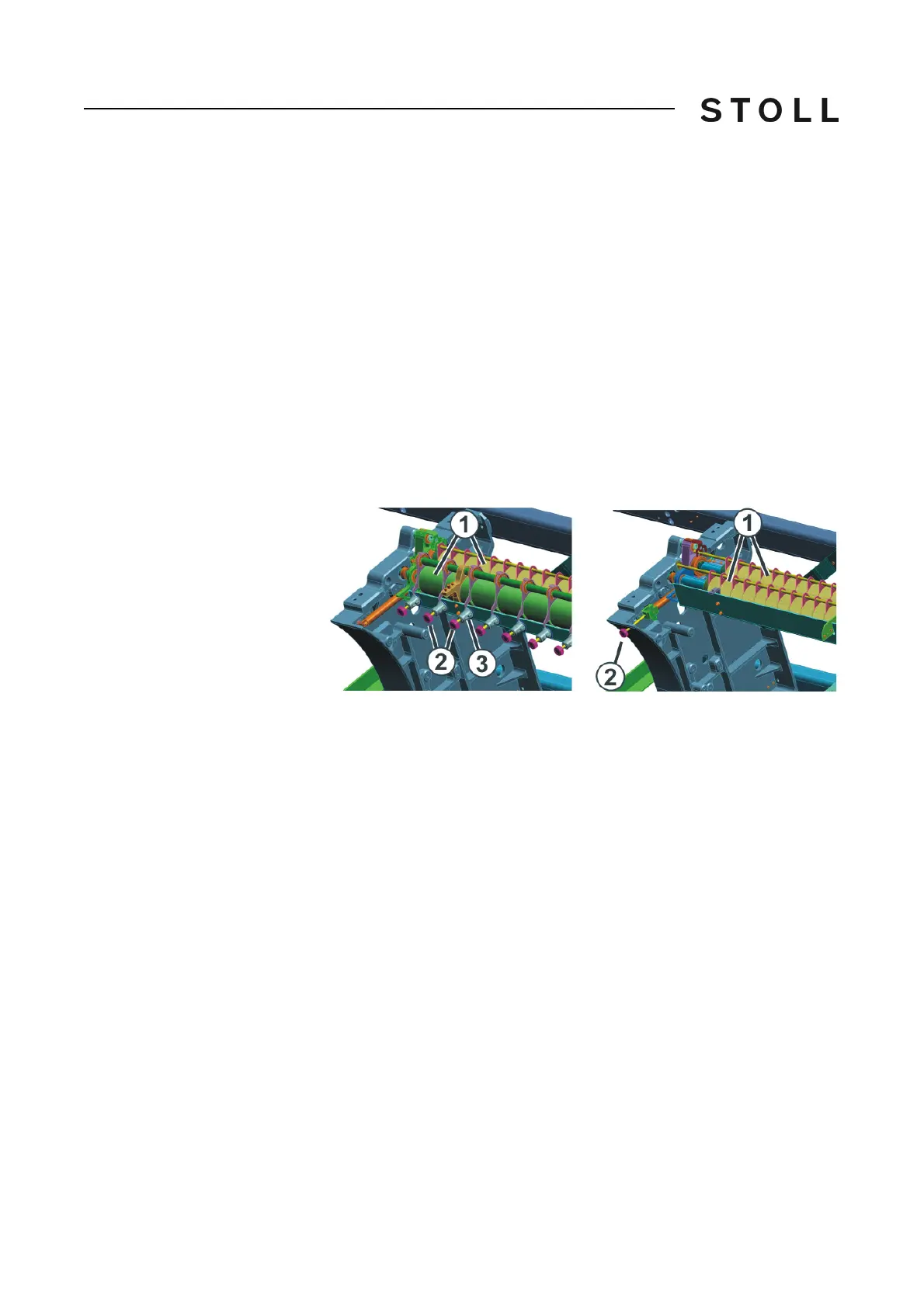 screws (2). The regulation acts on two take-down rollers. A scale (3)