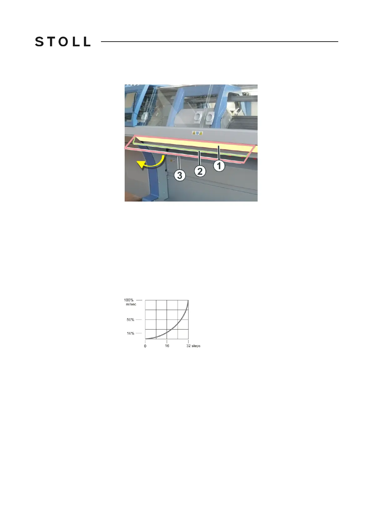 The path of the engaging rod from "0" to the production speed is subdivided in