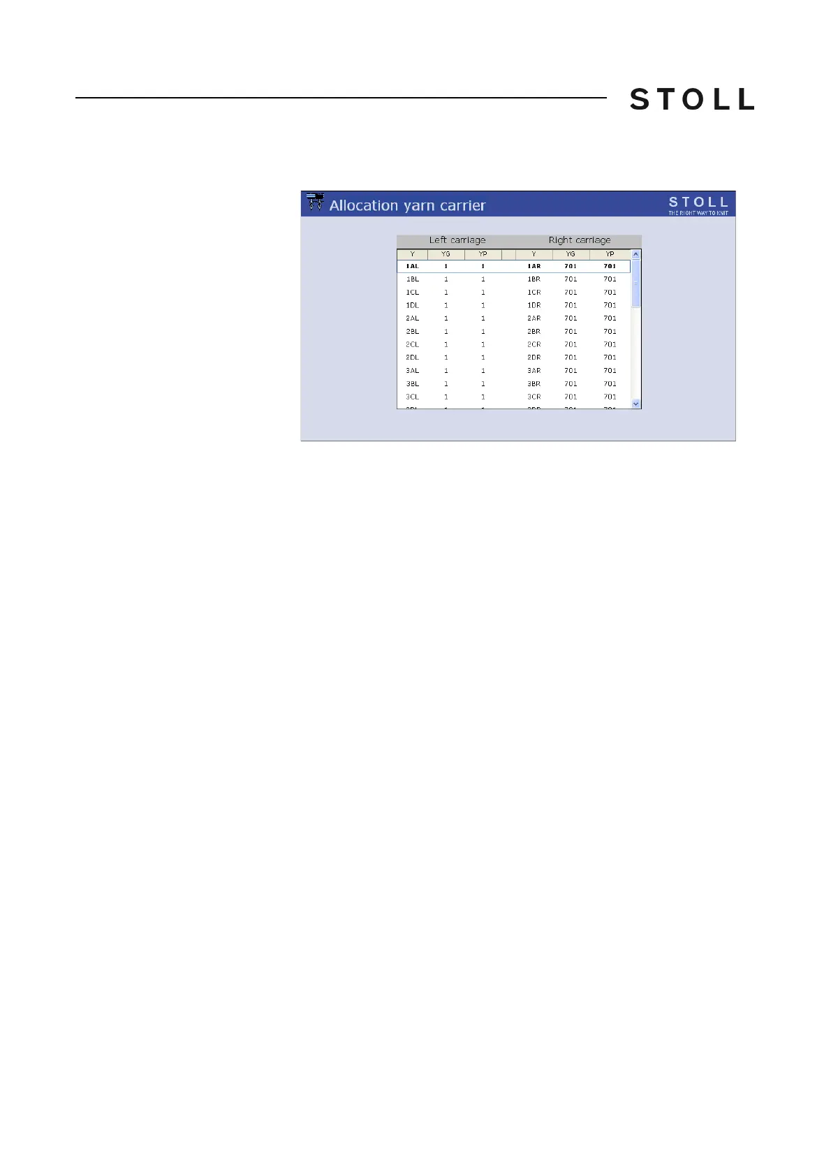 7. Call up the "Allocation yarn carrier" window.