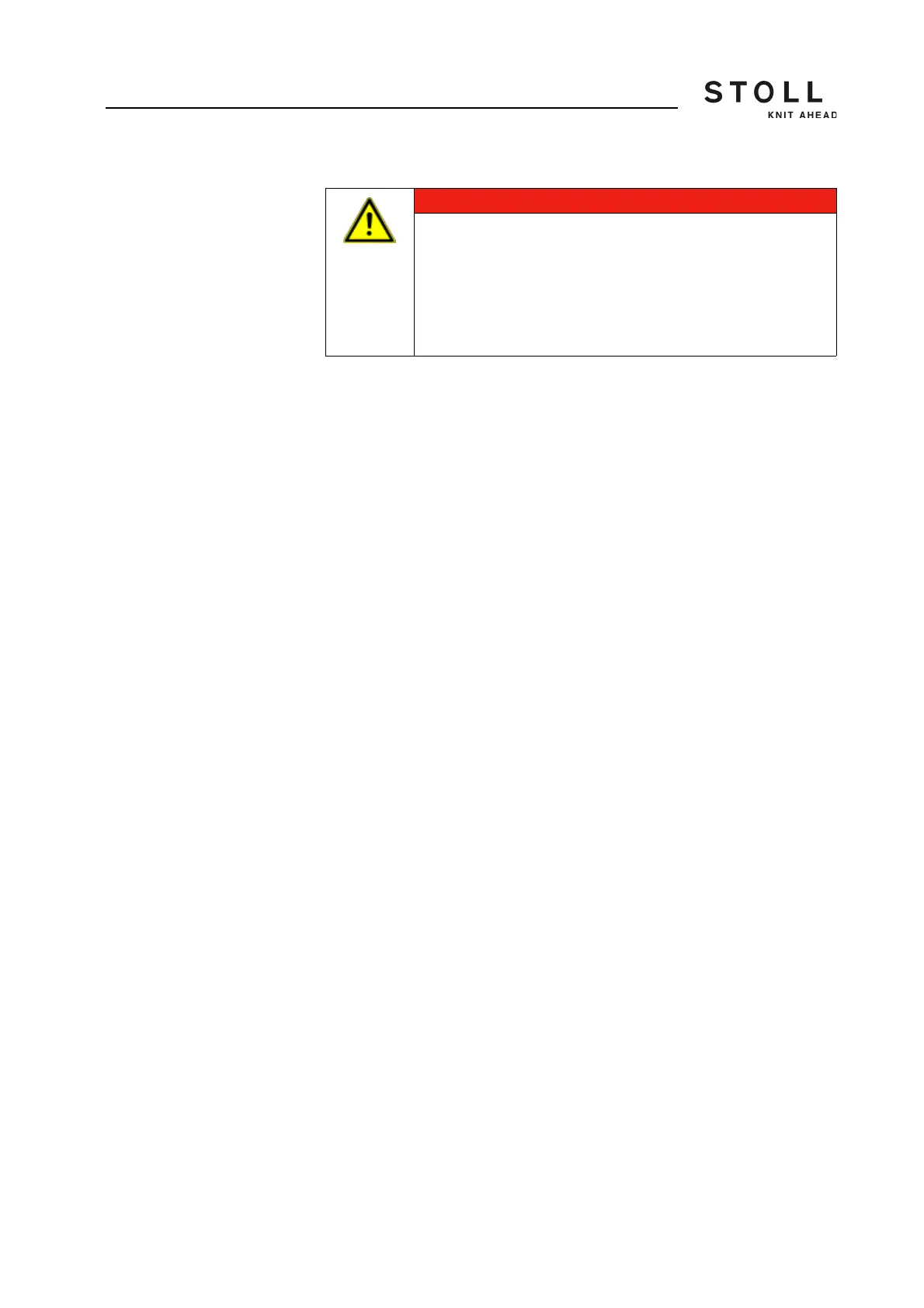 ➜ Do not reach in the area of the yarn carriers.