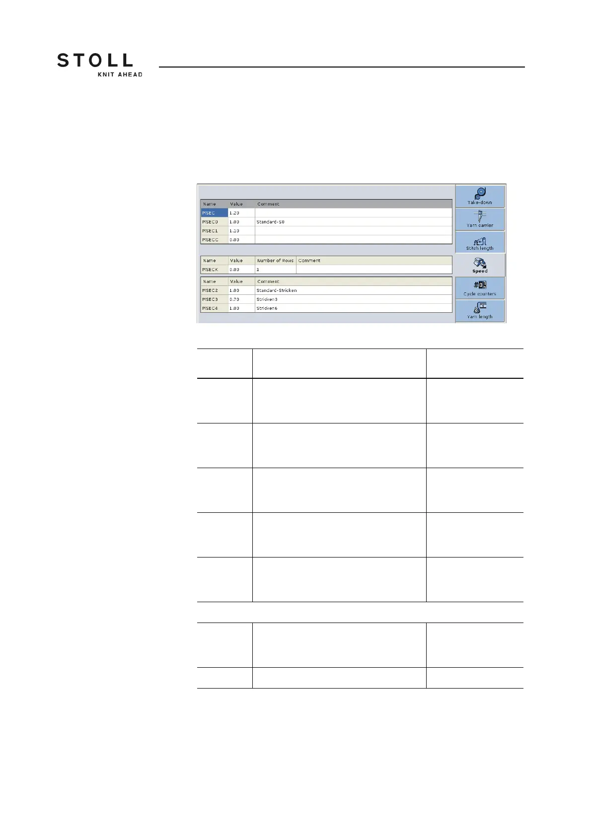 MSEC2-20 Speed for knitting rows Minimum value: 0.05