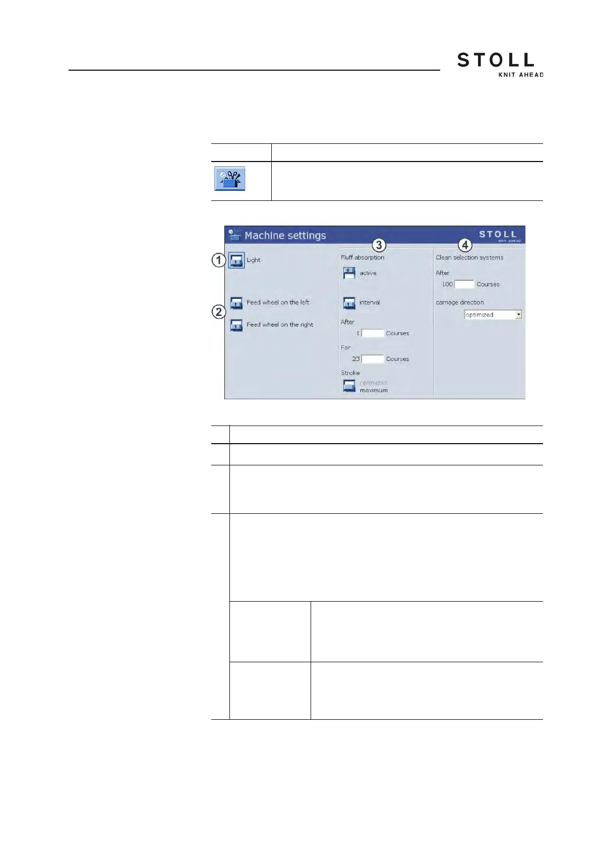 The needle beds in the knitting area are vacuumed off with the fluff absorption