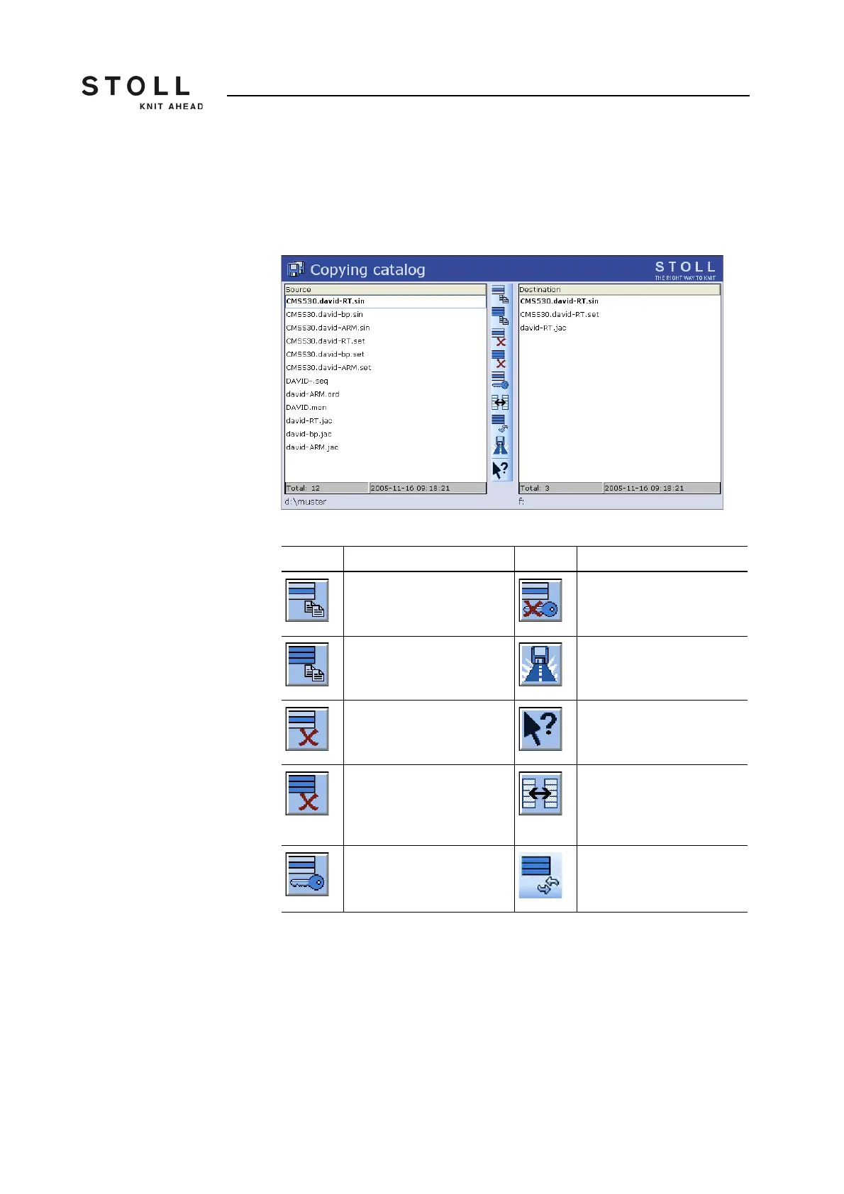 Keys in the "Copying catalog" window