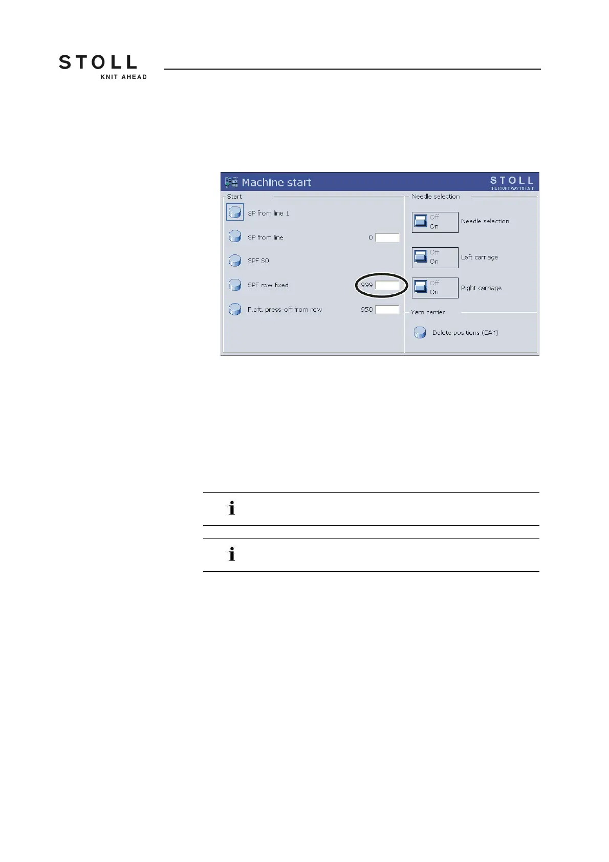 For the first 2 knitting rows after "SPF", the carriage moves