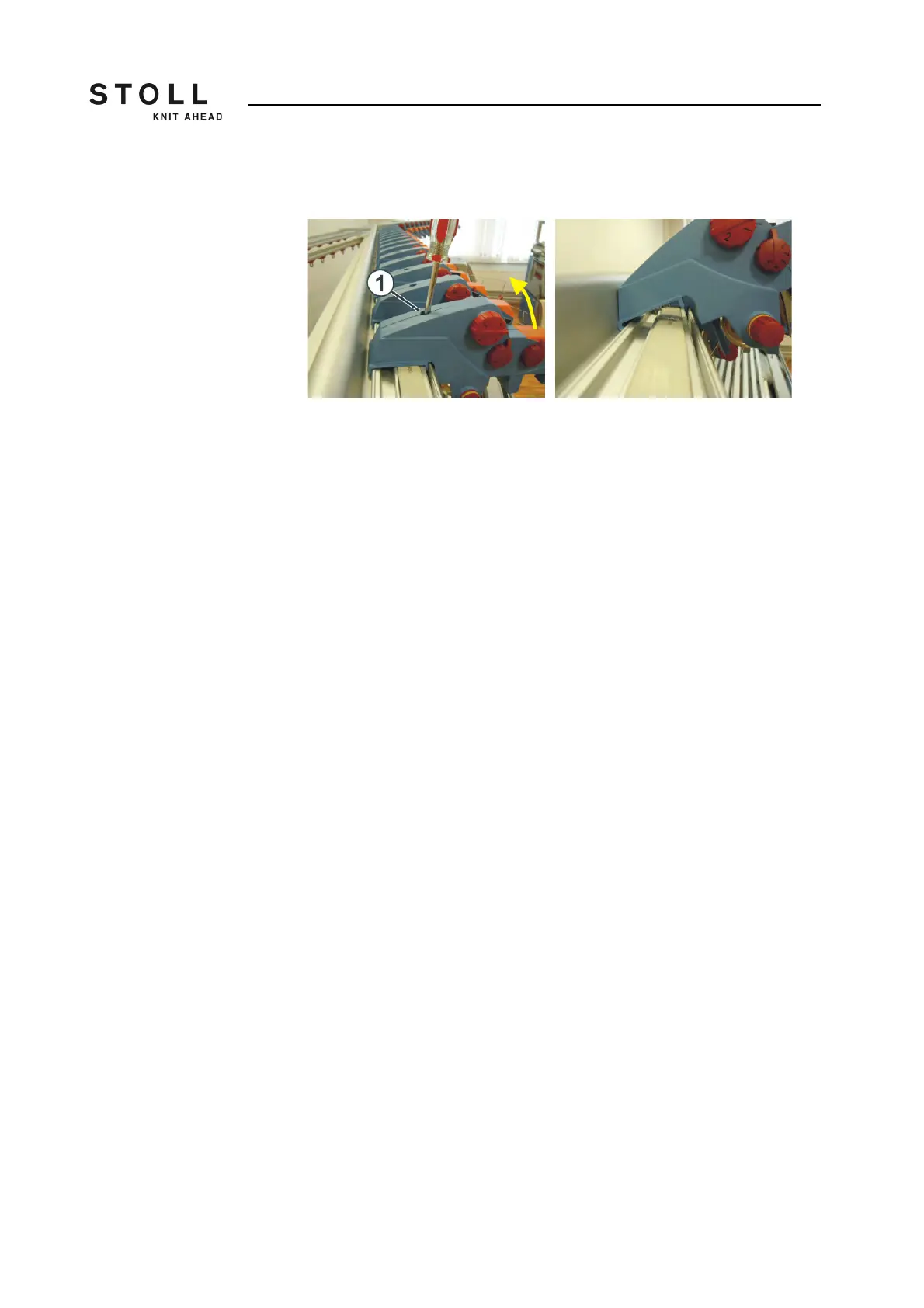 5. Hook in the new yarn control unit in the rear guide rail. Pull the yarn