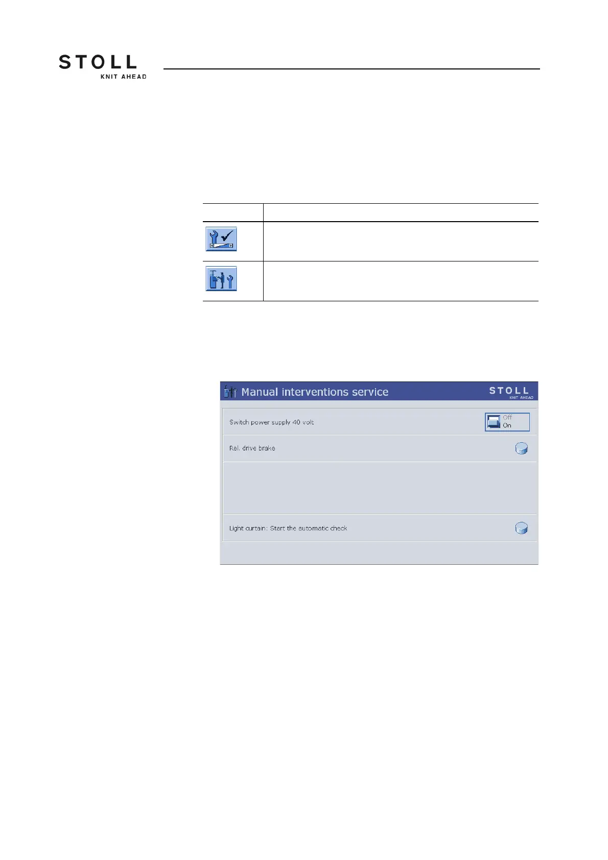 2. Call up from"Service" window "Manual interventions Service".