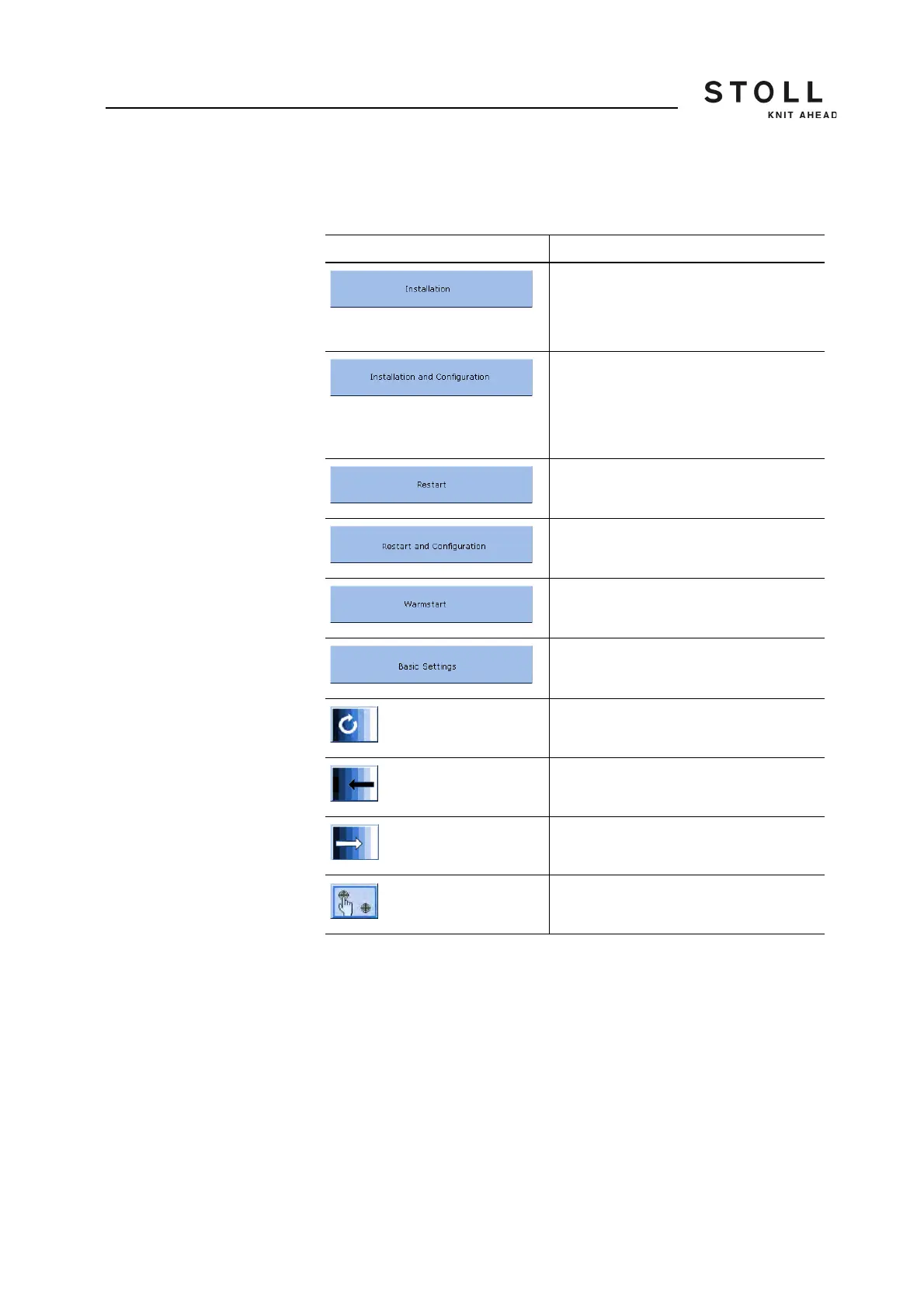 Interrupt warm start The warm start of the knitting machine can be interrupted. This happens by