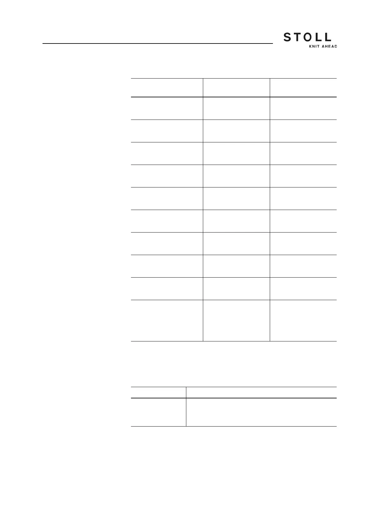Yarn table - Allocation of machine gauge and yarn thickness (Table 3)