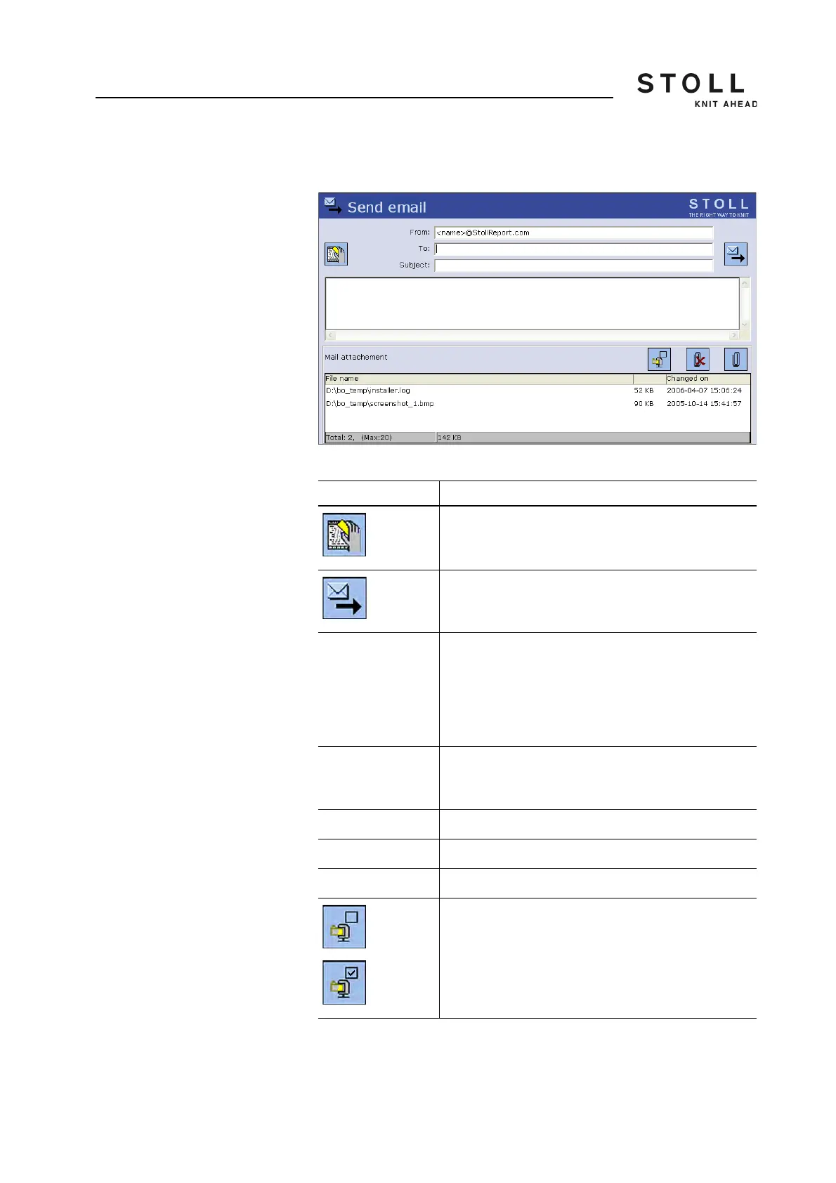 "Send email" window on the machine
