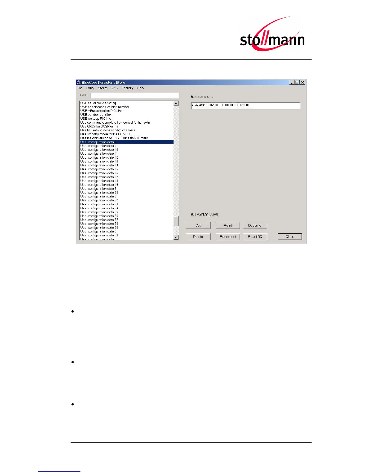 Select the PSKey “User configuration data 0” and press the “Delete” button.