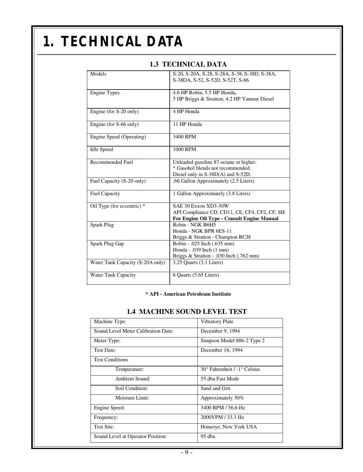 1.4 MACHINE SOUND LEVEL TEST