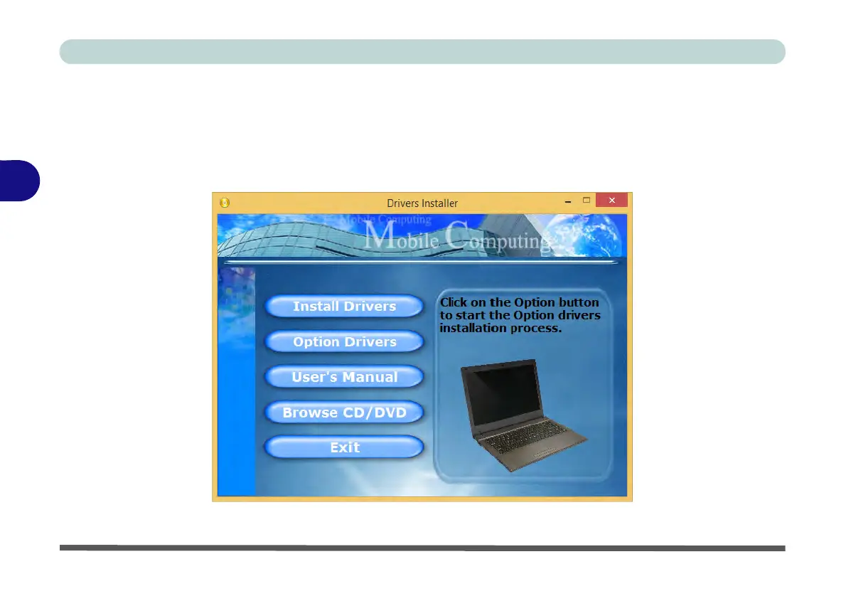 4. Click Install Drivers (button), or Option Drivers (button) to access the Optional driver menu.