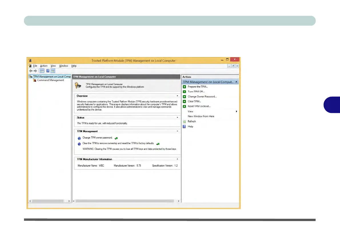 4. The TPM Management window allows you to configure the TPM within Windows.