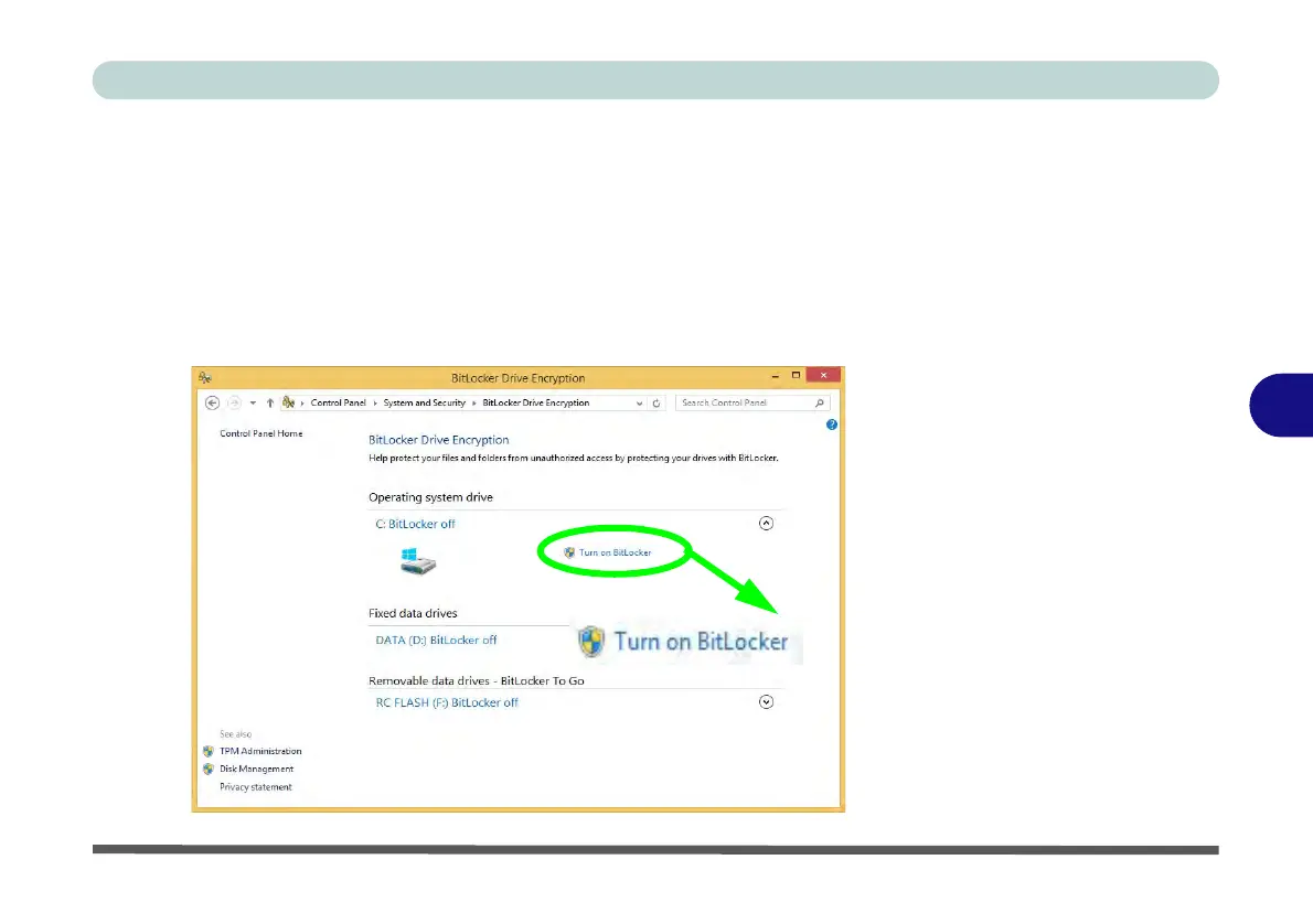 data on the disk. Access the Microsoft BitLocker Drive Encryption control panel