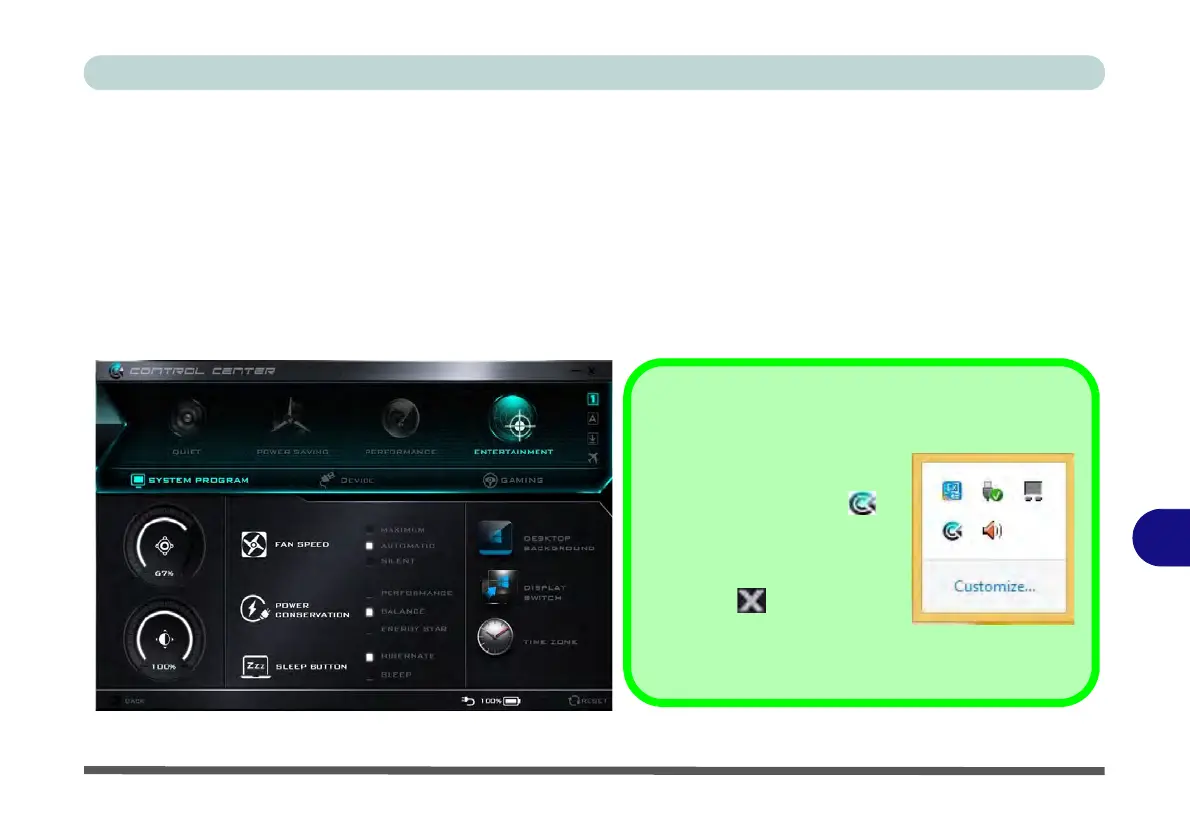 The following chapter will give a quick description of the functions of the Control Center. The Control Center