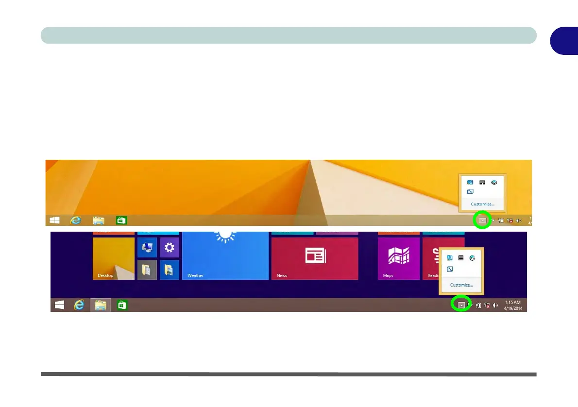 bar (system tray). In Windows 8.1 the taskbar can be directly accessed from the Desktop application; if you