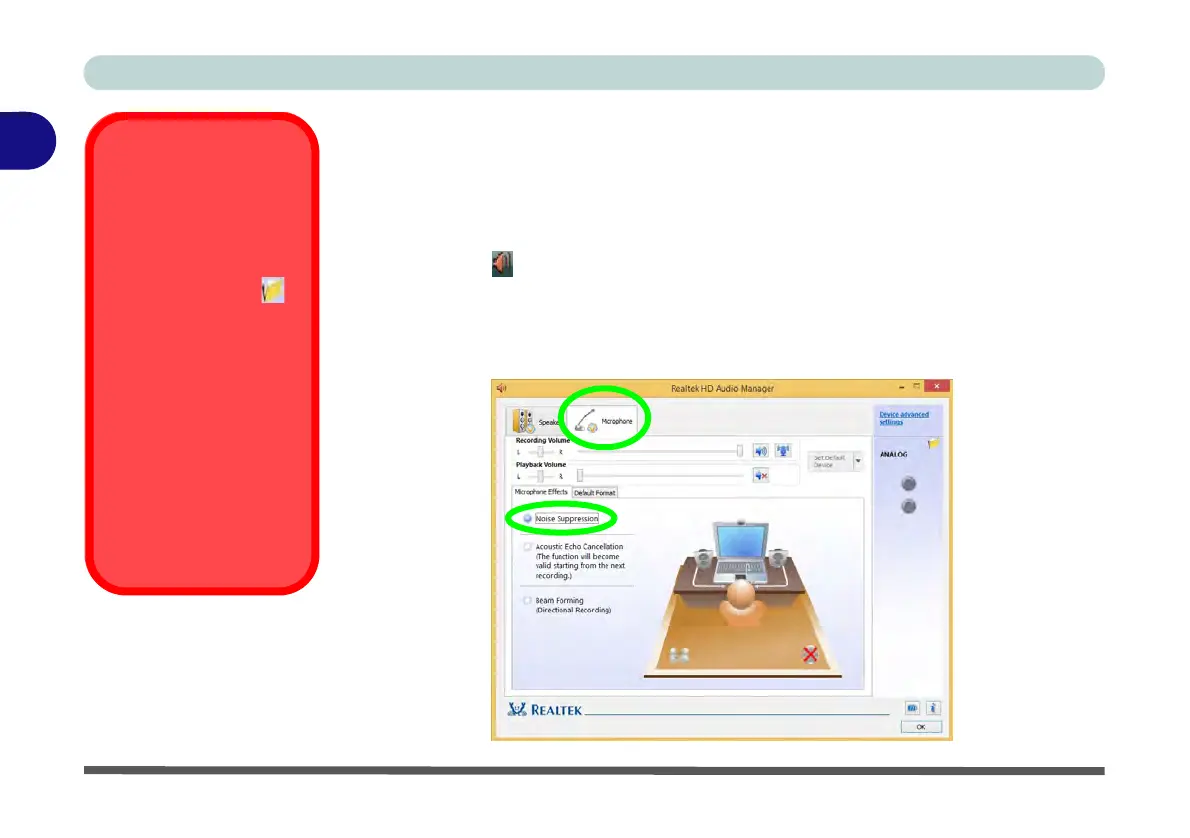 Noise Suppression (button), or adjust the Recording Volume level to around 60,