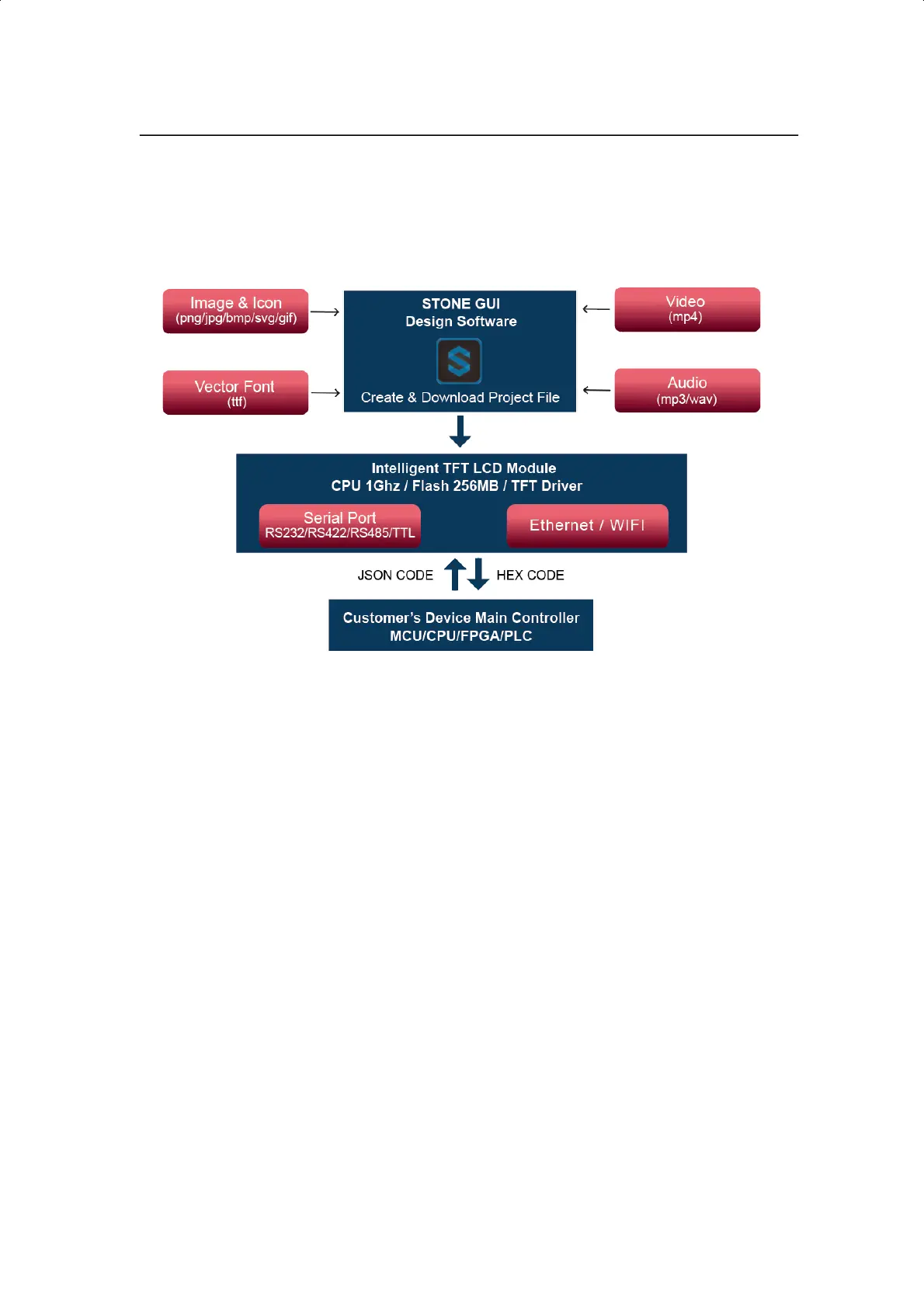 The Intelligent TFT-LCD Module communicates with the Customer’s