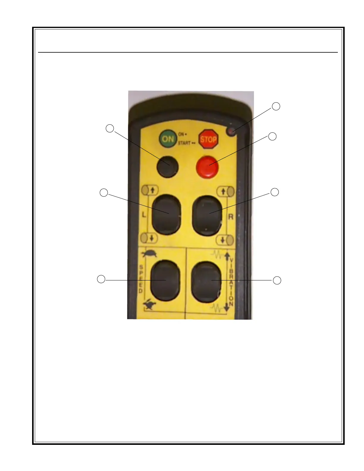 6. High/Low Speed Button - Controls machine speed high or low. Also shuts off vibration.