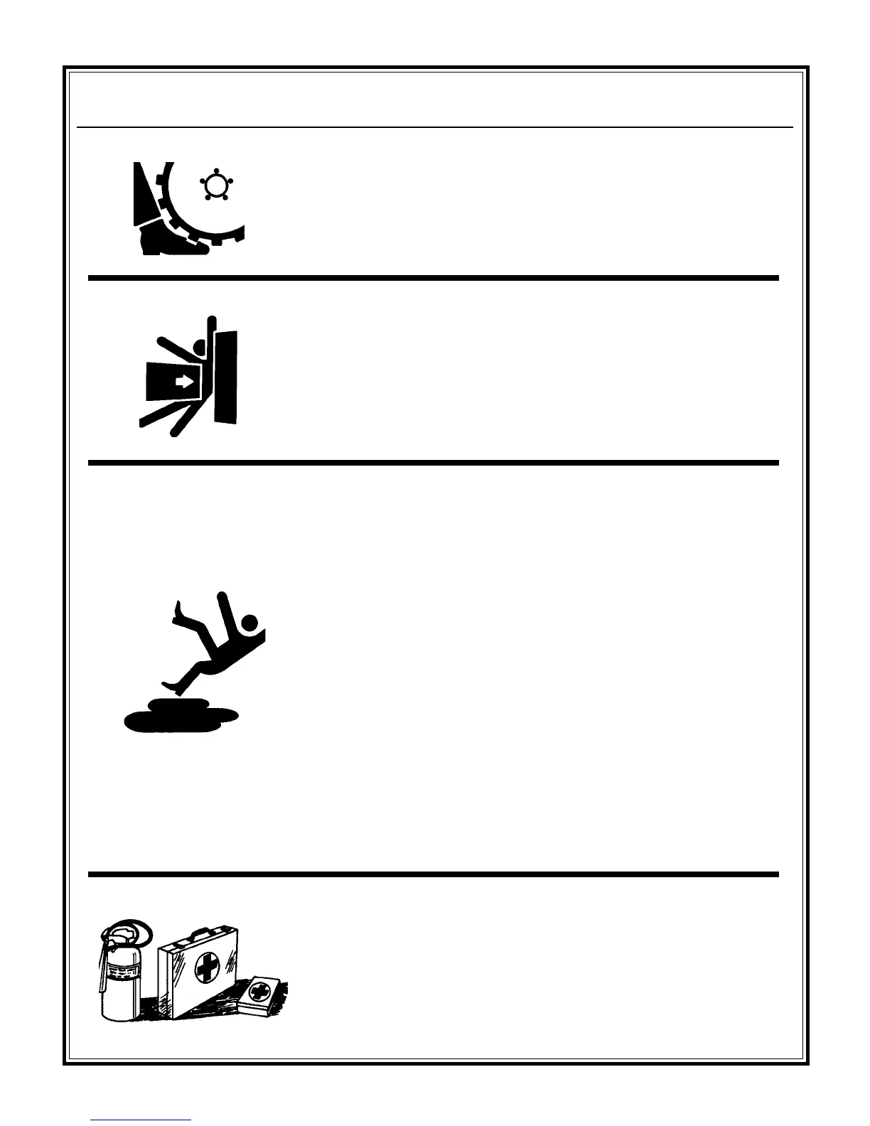 • Never lubricate, service or adjust machine while it is moving. Keep