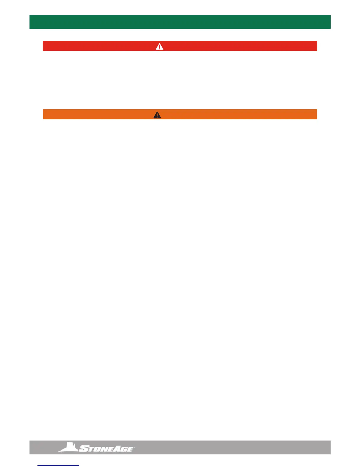 • Inspect the high pressure hose for damage. Use ONLY hoses intended for waterblast applications and