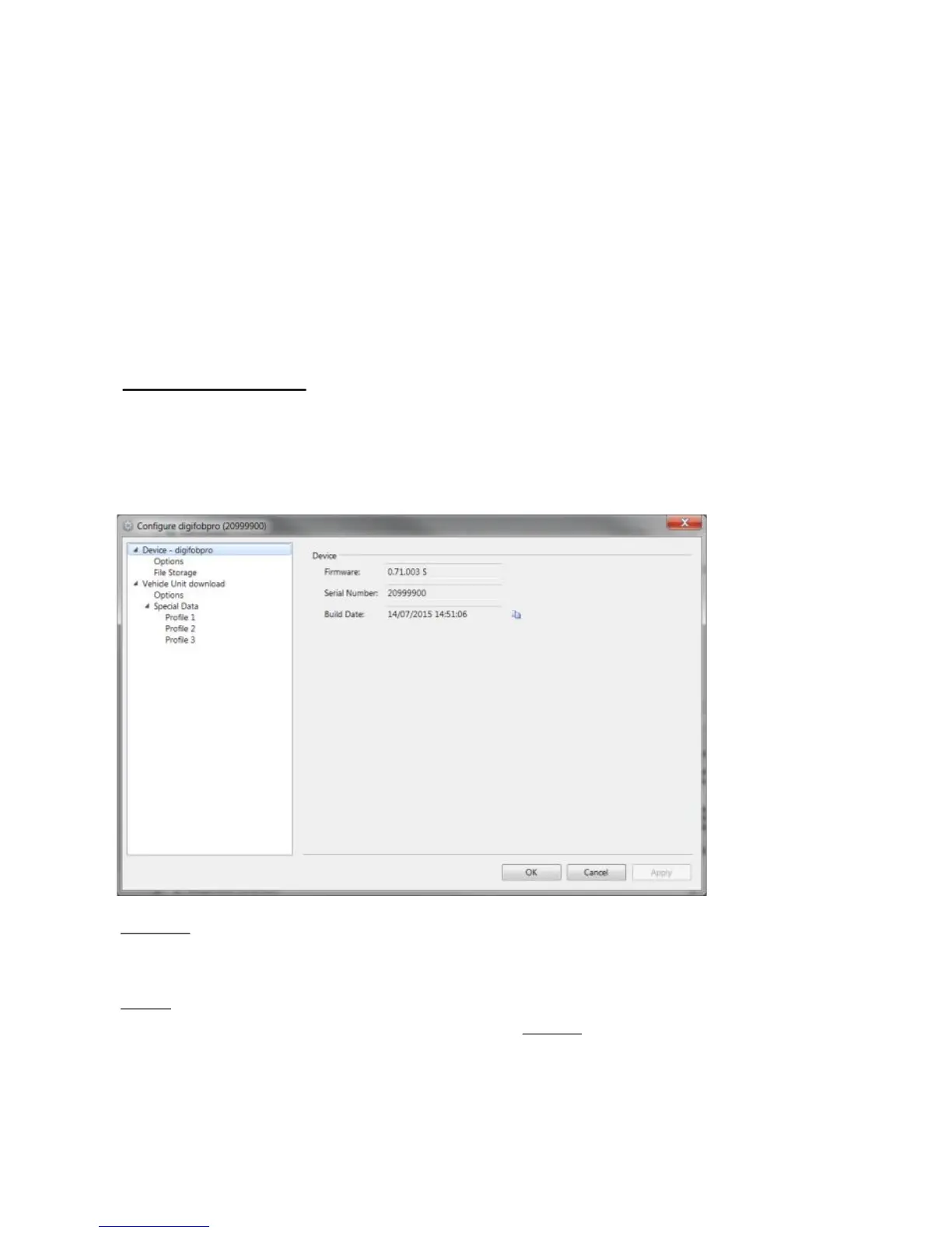 Under ‘Device - digifobpro’ you can view the units; Firmware Version, Serial