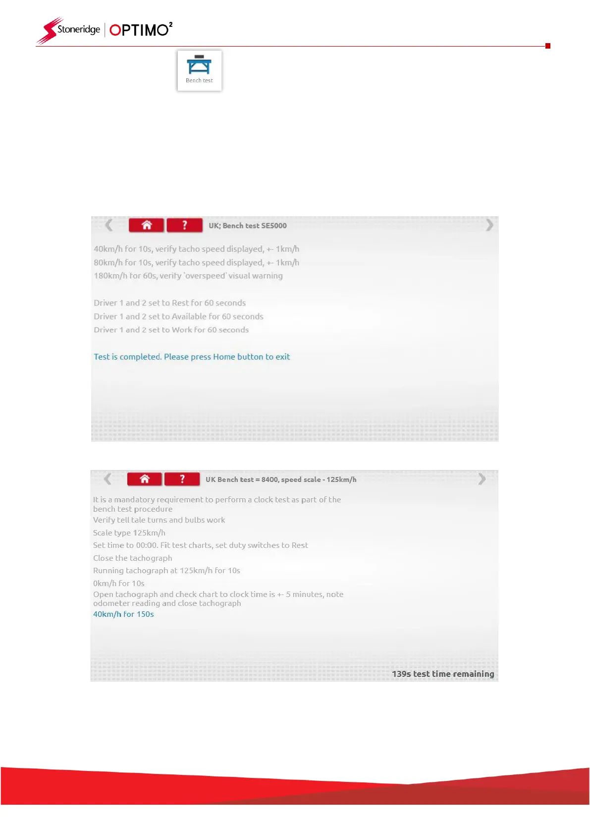 ▪ For all bench tests follow on screen prompts, and select buttons, duties etc. as required.
