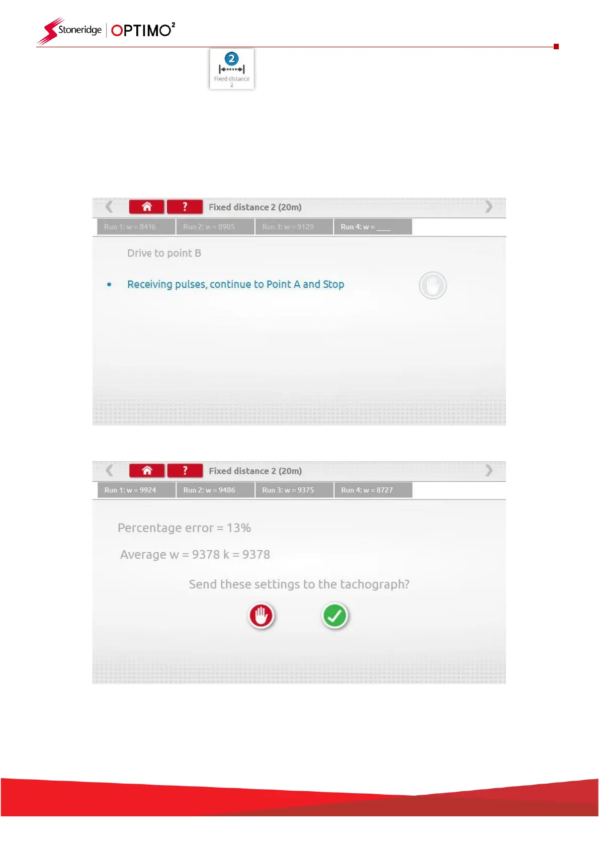 ▪ The “w” value for each run is displayed. Carry out appropriate runs as prompted.