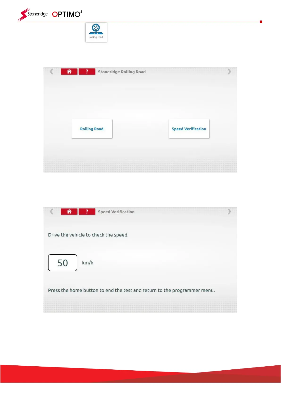 Tapping the icon enables selection of Rolling Road test or Speed Verification test.