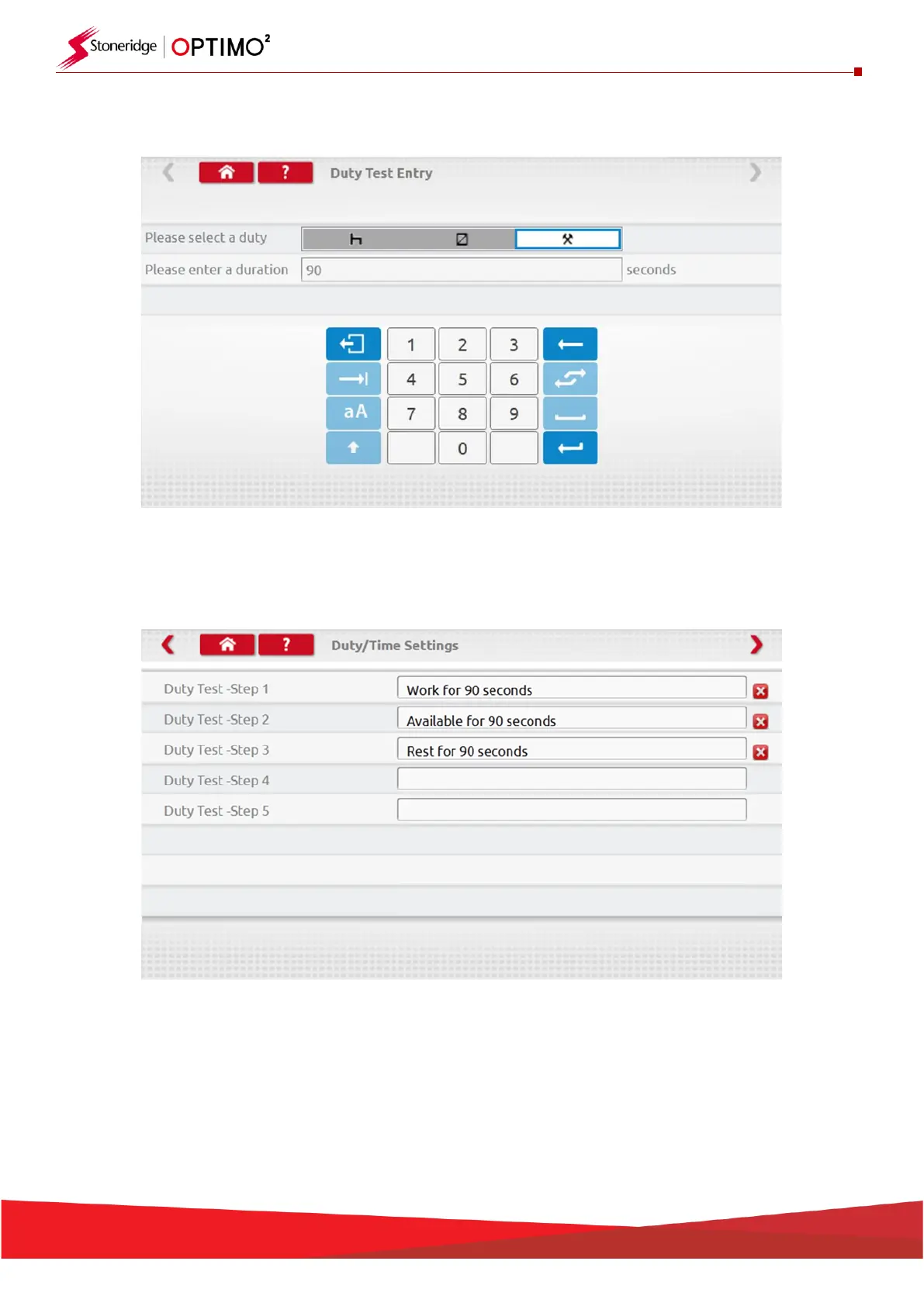 ▪ Once final Duty test is entered, tap the red arrow top right, or Home Button, to exit the setup