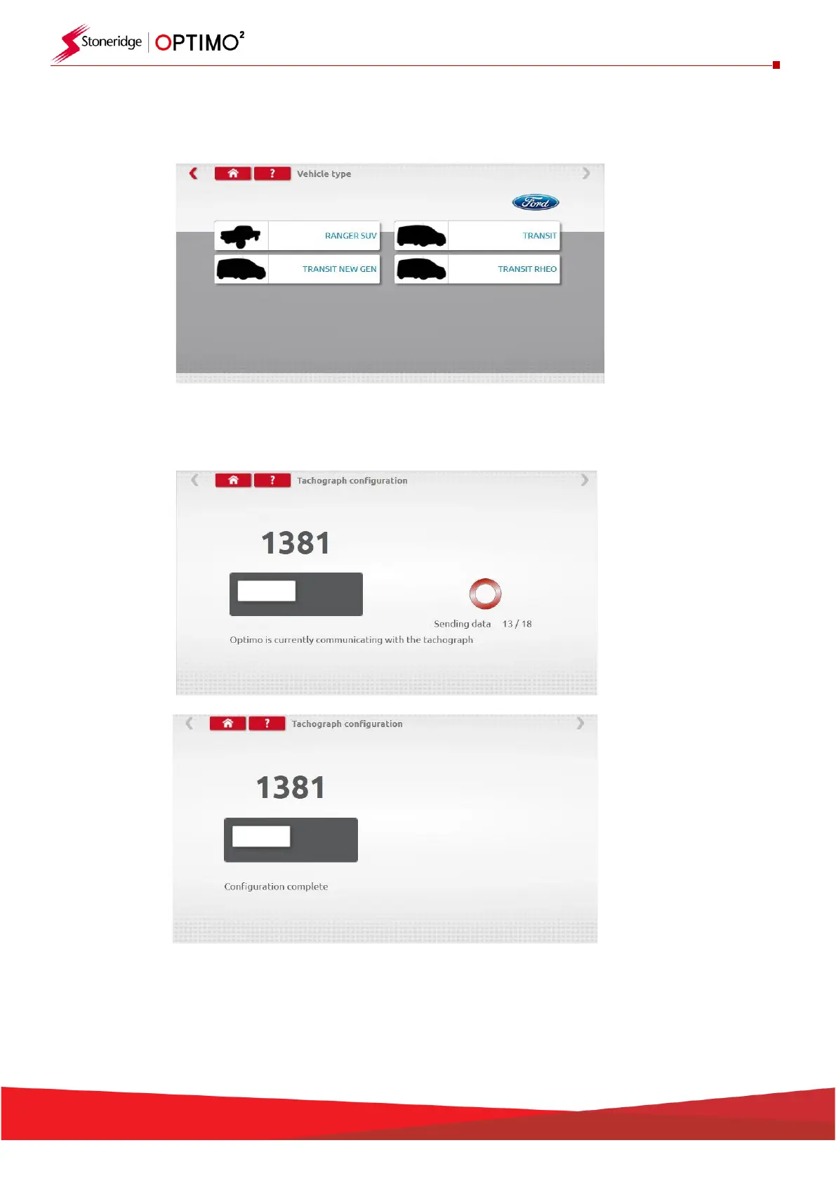 ▪ Tap the icon for correct vehicle type, and a screen shows Optimo² communicating with the