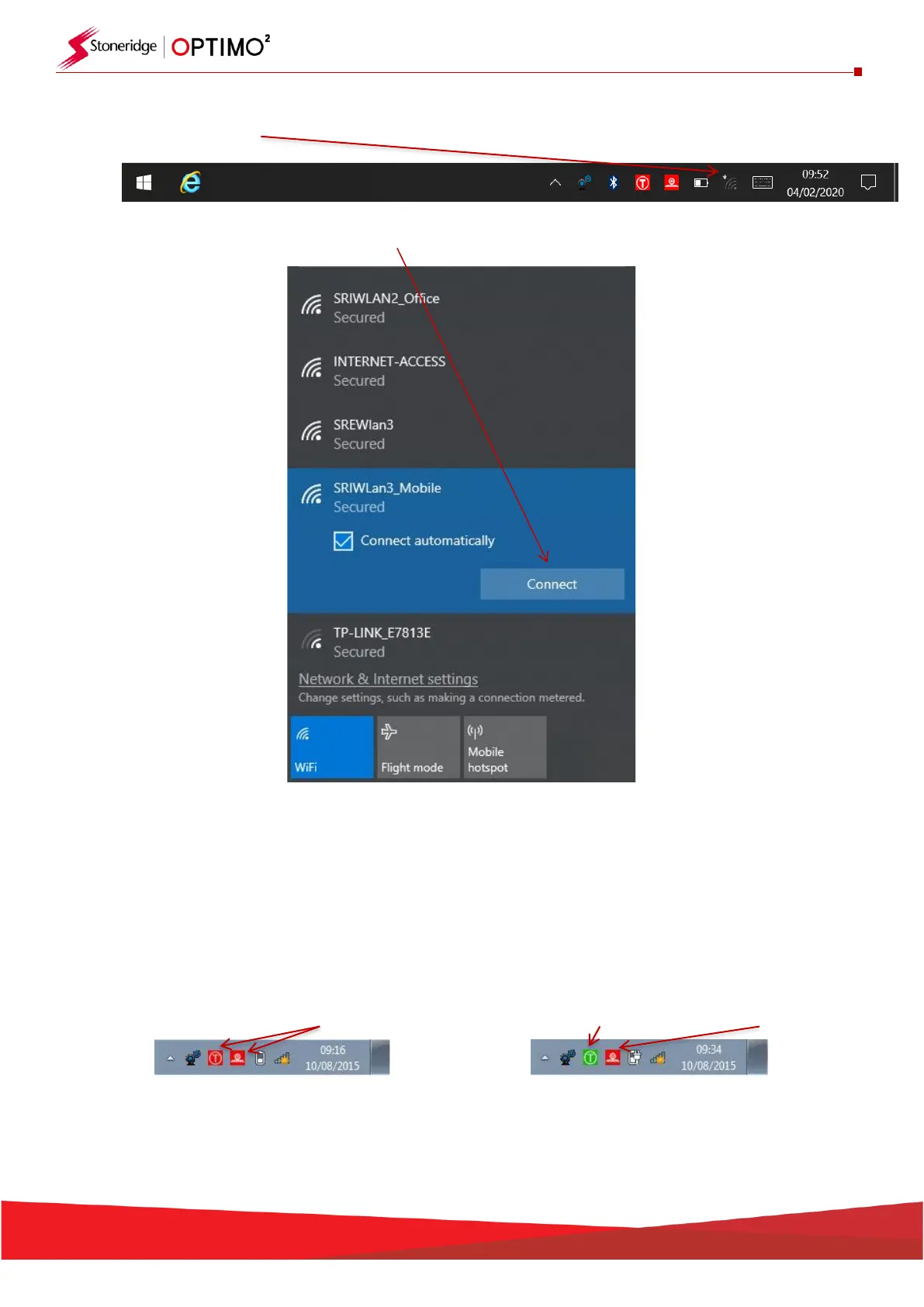 ▪ There are two wireless indicators in the taskbar, one for connection to the tachograph and one