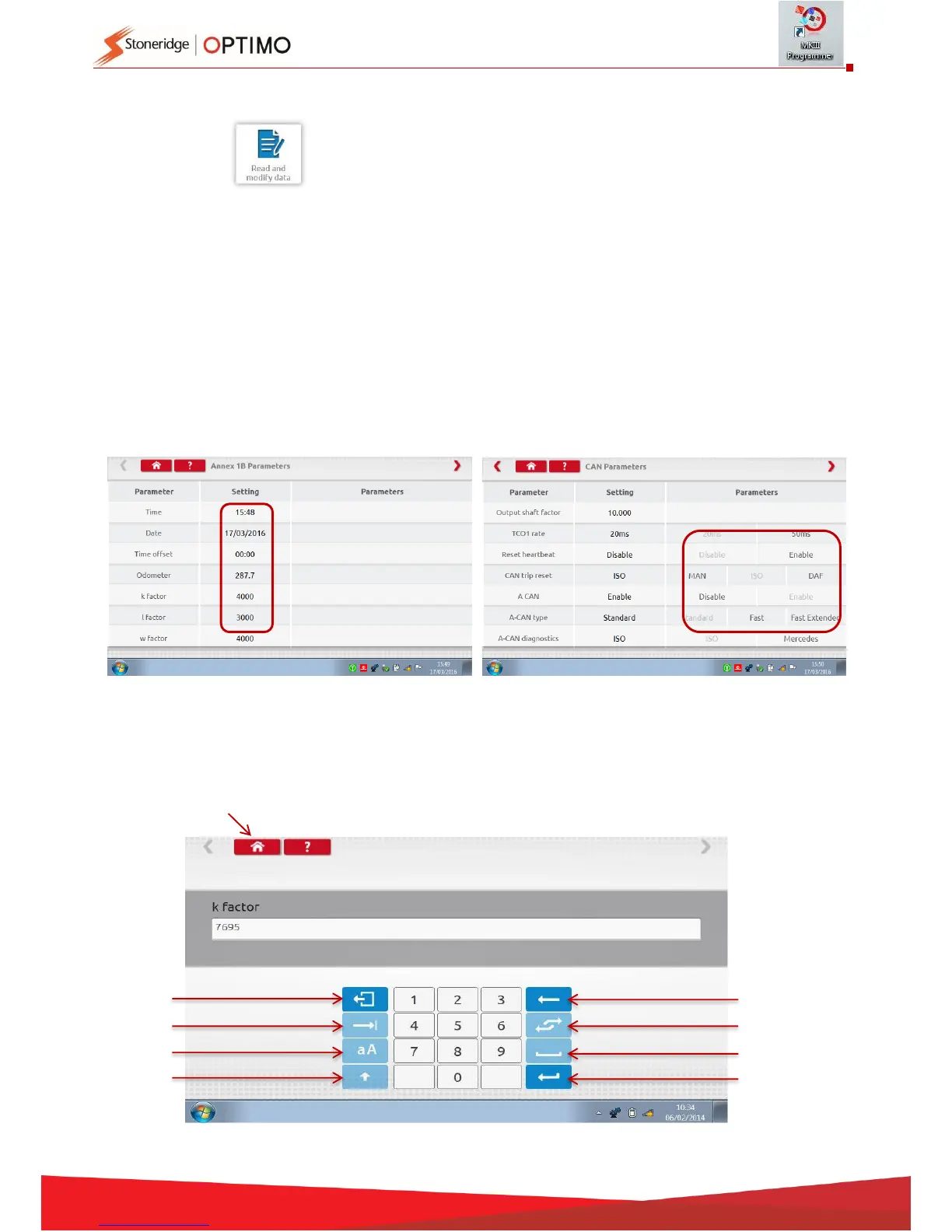 that information to the tachograph. More screens are accessed by using highlighted arrows at