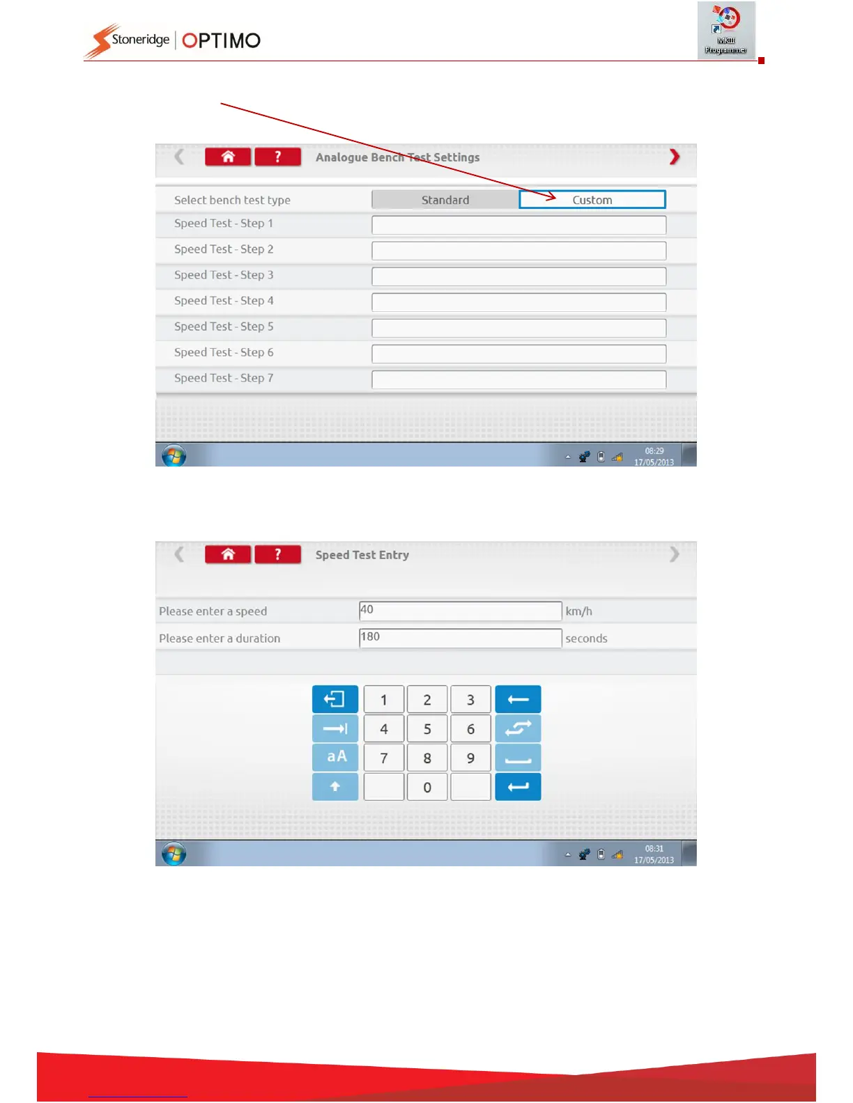 Tap an empty box adjacent to each Speed Test step then enter the speed and duration of step.