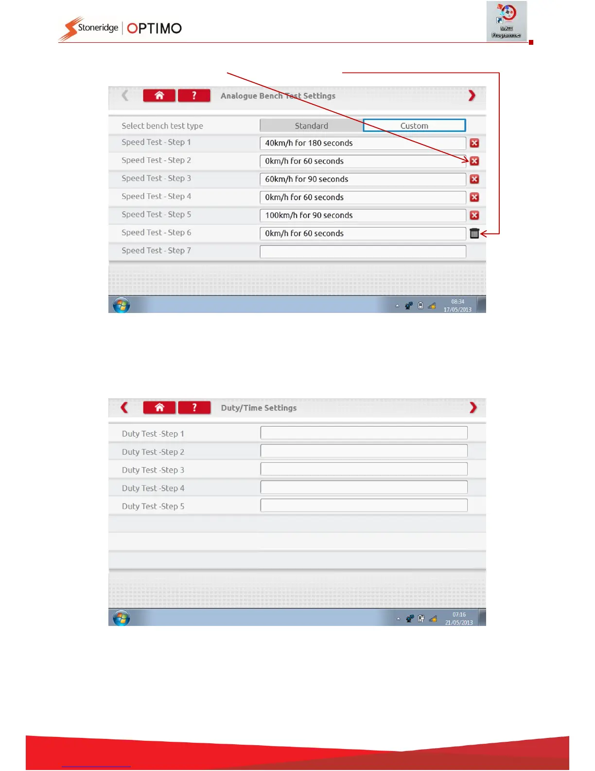 Once all Speeds entered, tap red arrow top right to enter up to 5 duty steps. Tap an empty box