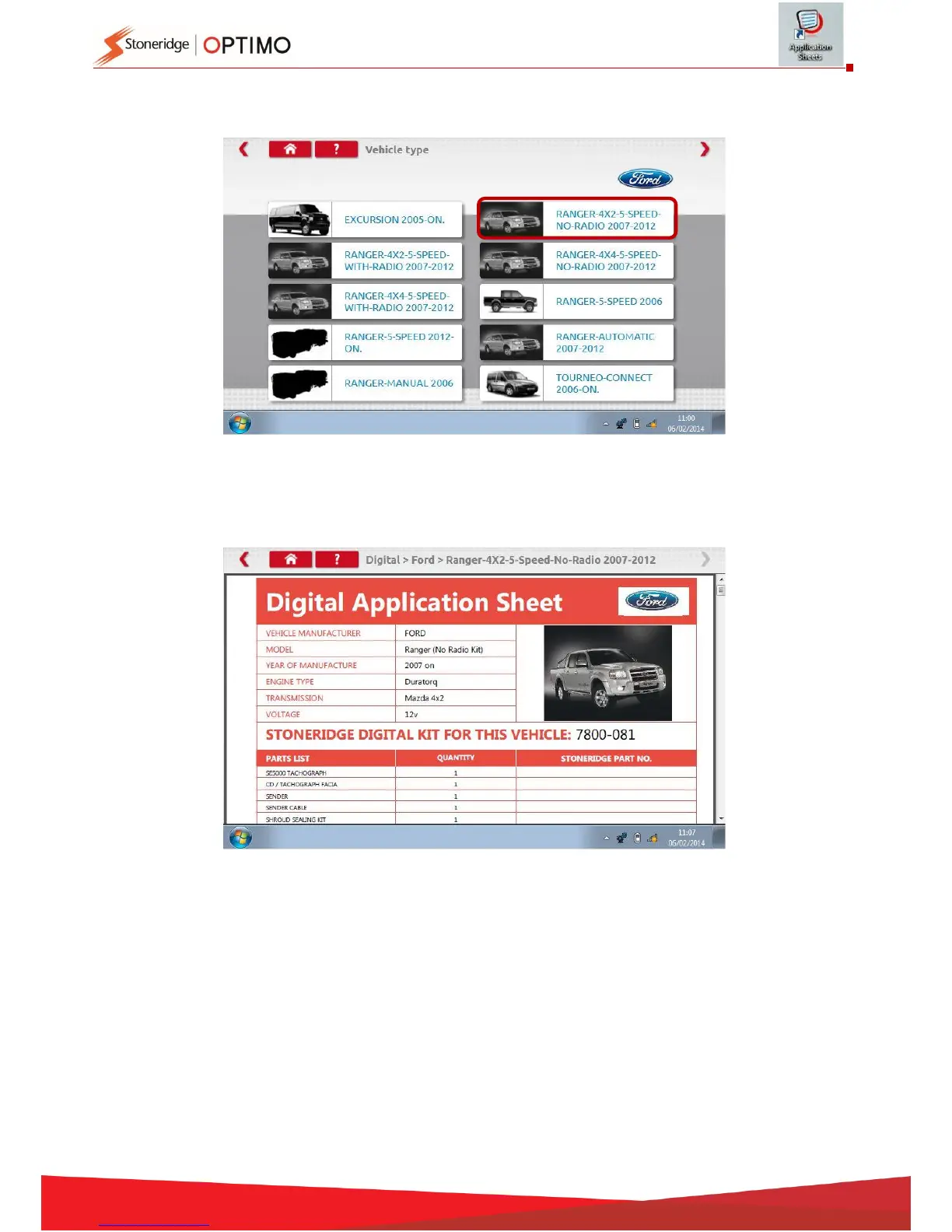 The application sheet is displayed which details the kit required, and in some cases instructions for