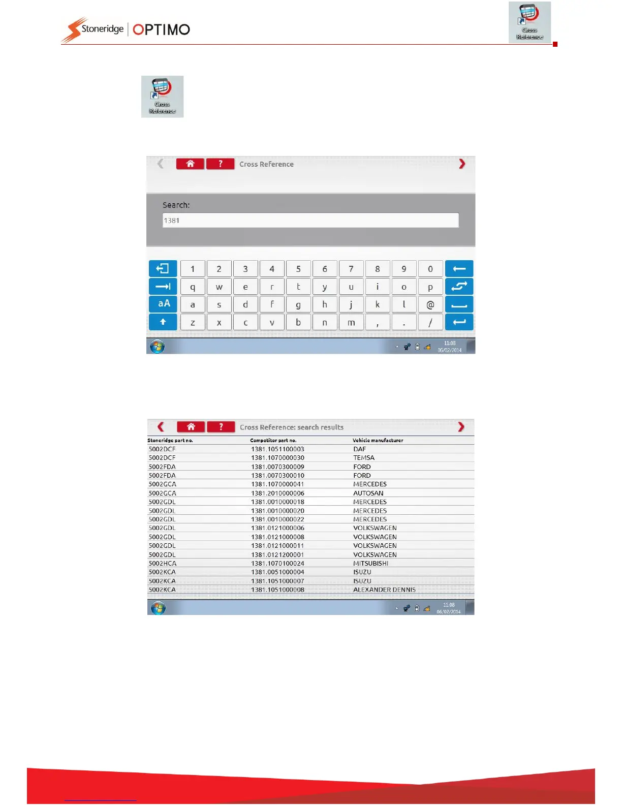 Tapping enables a user to cross reference tachographs or sensors with Stoneridge