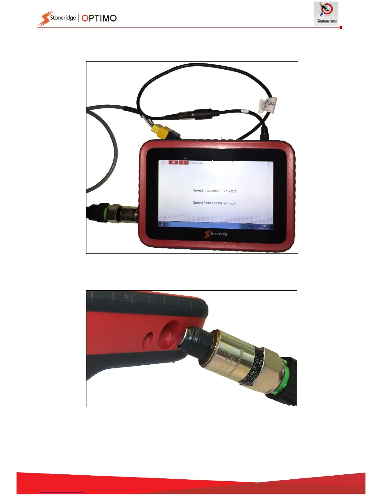 Connect as shown, press sensor into recess at bottom left of the device and the test begins. A